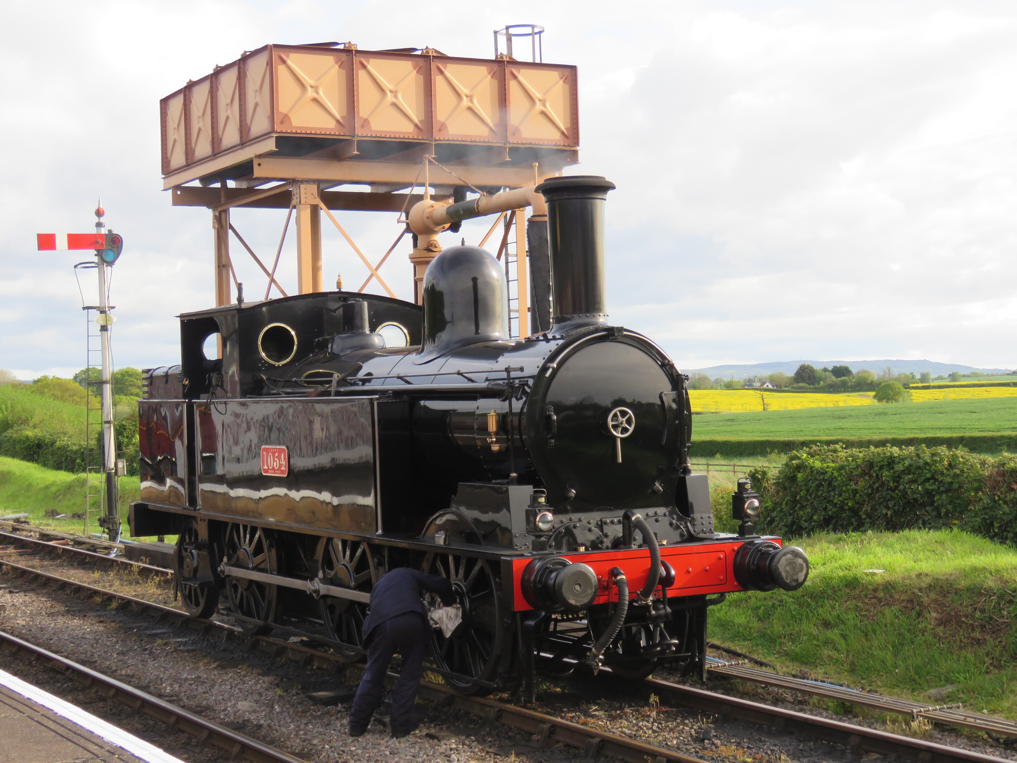 1054 at Bishops LydeardAt the end of the day, 0-6-2 side tank 1054 is prepped for the following day, at Bishops Lydeard.