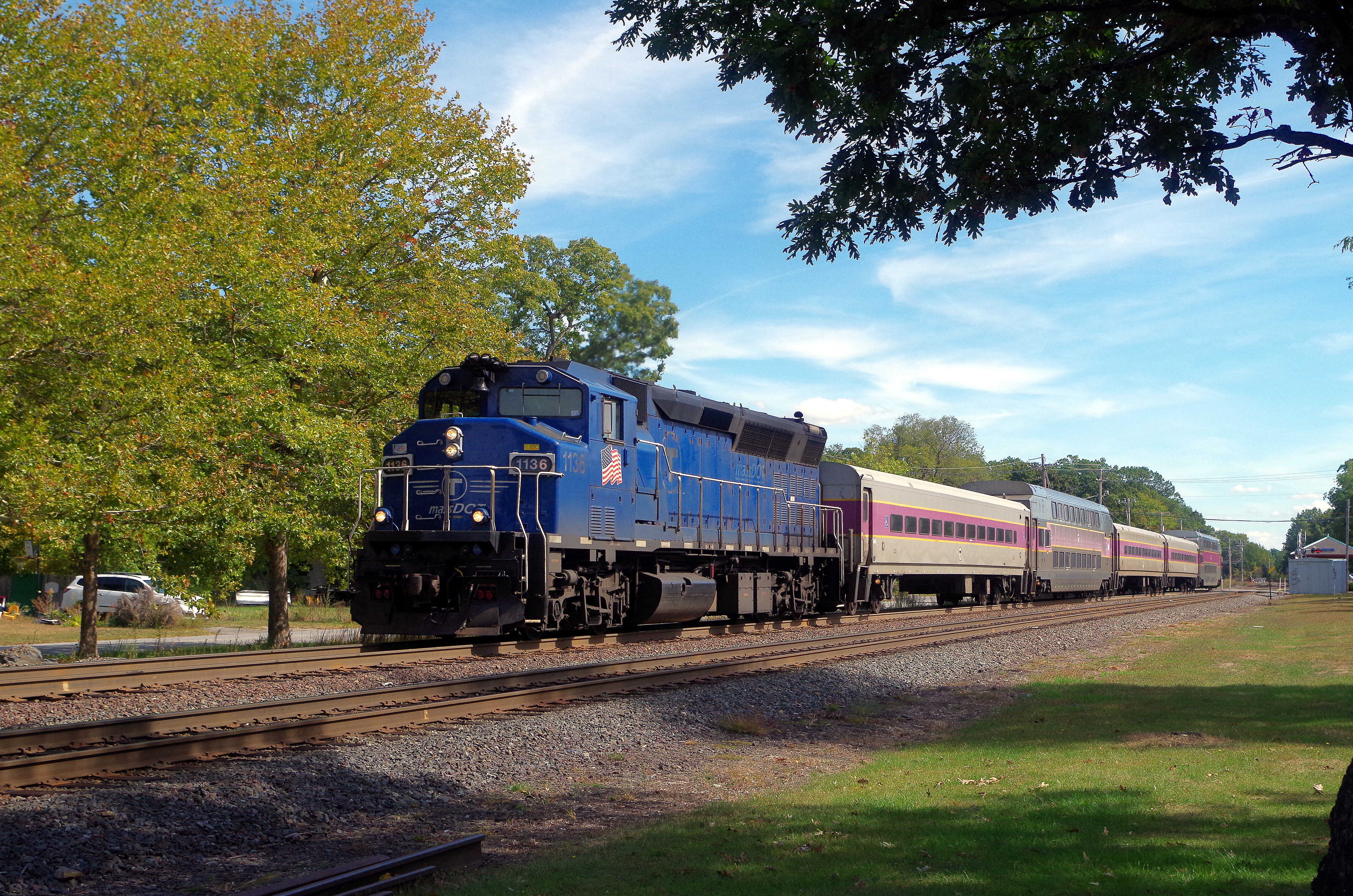 MBTA @ Shirley, Ma. The T's 5413 makes its departure. Photographed by Bruce Macdonald, September 21, 2025. Added to the photo archive by Bruce Macdonald, September 21, 2025. Railroad: Pan Am Southern. | Bruce Macdonald's awards: |        |