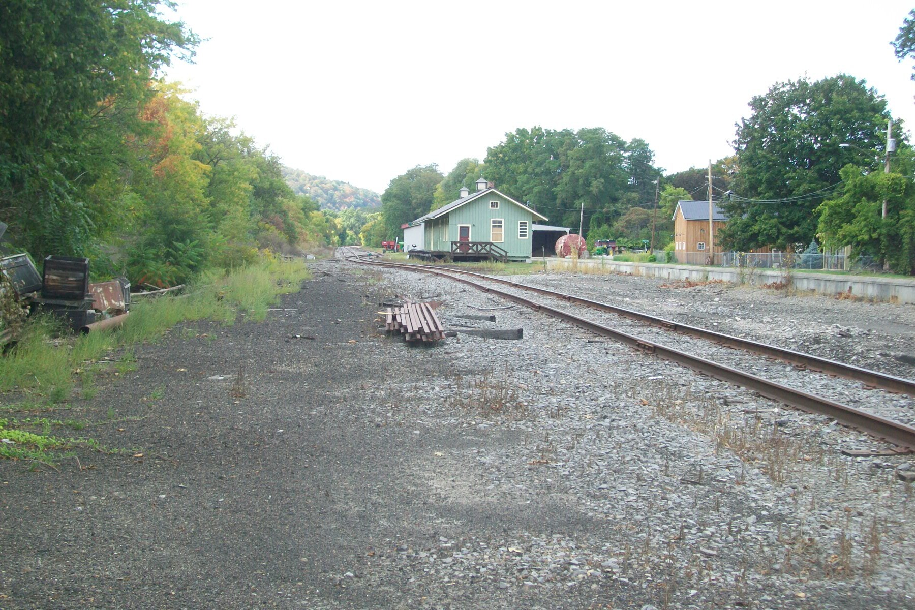 Bath & Hammondsport RR: Bath, NY B&H main (ex Erie RR) as seen from Cameron St. Tracks area heading to Cohocton through here Photographed by Chris Bigham, September 14, 2025. Added to the photo archive by Chris Bigham, September 23, 2025. Railroad: Bath & Hammonsport. » Contact the person who posted this photograph.