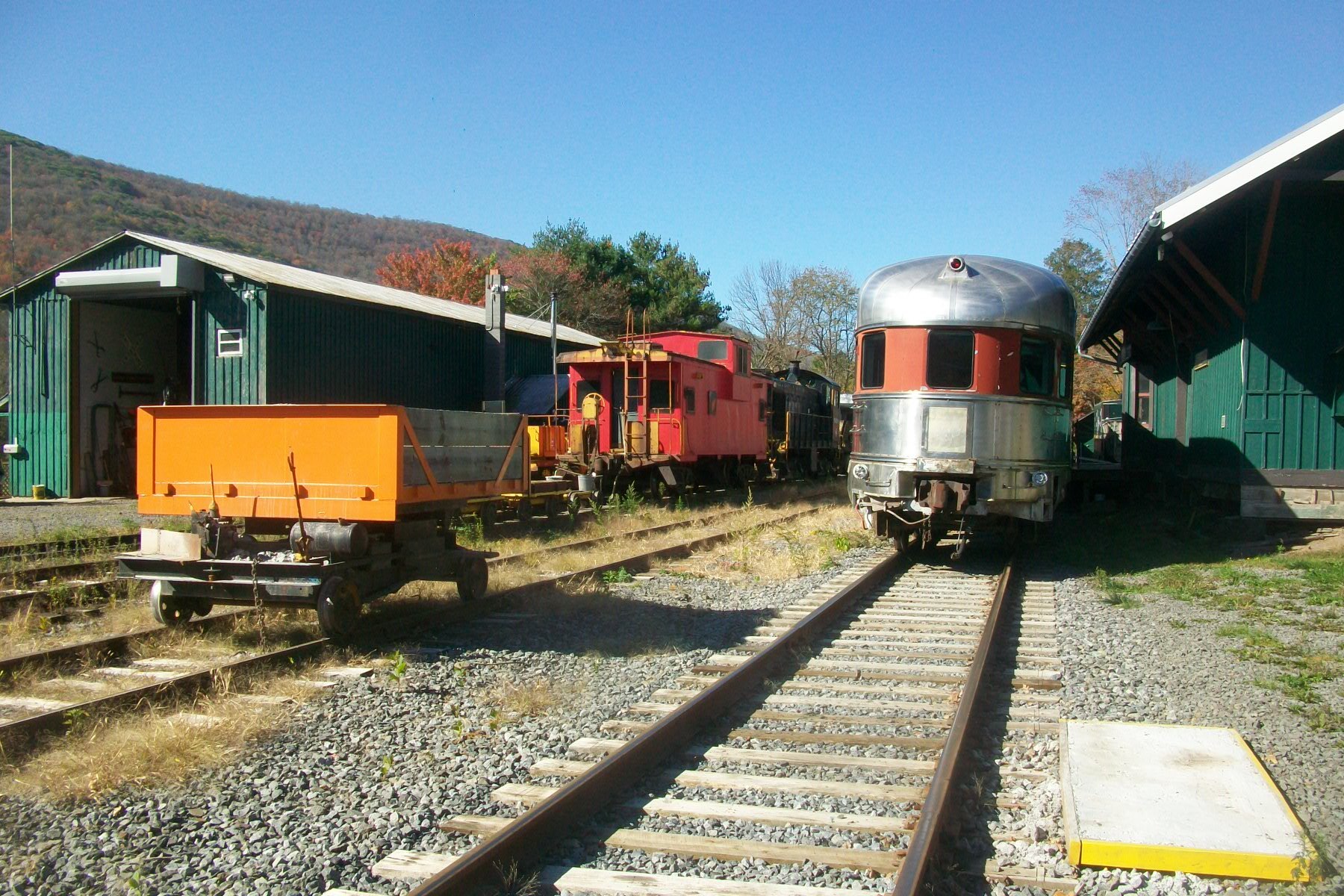 Delaware & Ulster RR: Arkville, NY The cars on the right are used on the D&U passenger trains. I wish I had time and that I loved closer to ride. Photographed by Christopher H Bigham, October 6, 2025. Added to the photo archive by Chris Bigham, October 19, 2025. Railroad: Delaware and Ulster. » Contact the person who posted this photograph.
