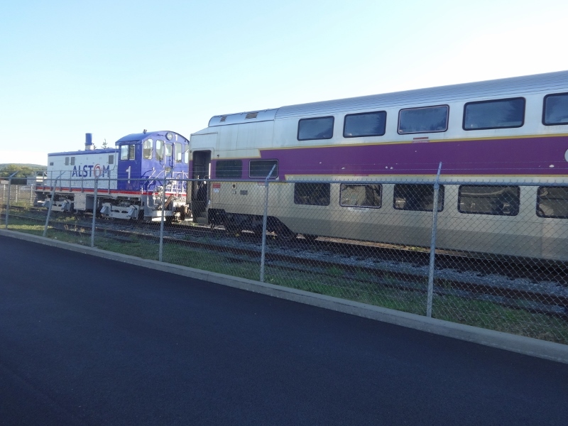 Alstom Switcher and MBTA CarAlstom is a facility located in Hornell, NY that manufactures street and subway cars and also repairs passenger cars. There was also a Green Line set in the yard. The railroad behind the switcher is ex-Erie and runs from PA through the Finger Lakes.