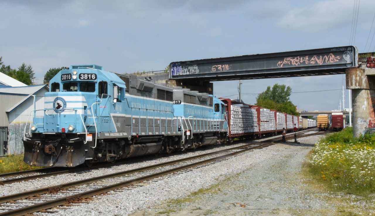 CMQ Switcher at SherbrookeCMQ 3816 & 3817 switch the interchange on the St Lawrence and Atlantic at Sherbrooke, QC