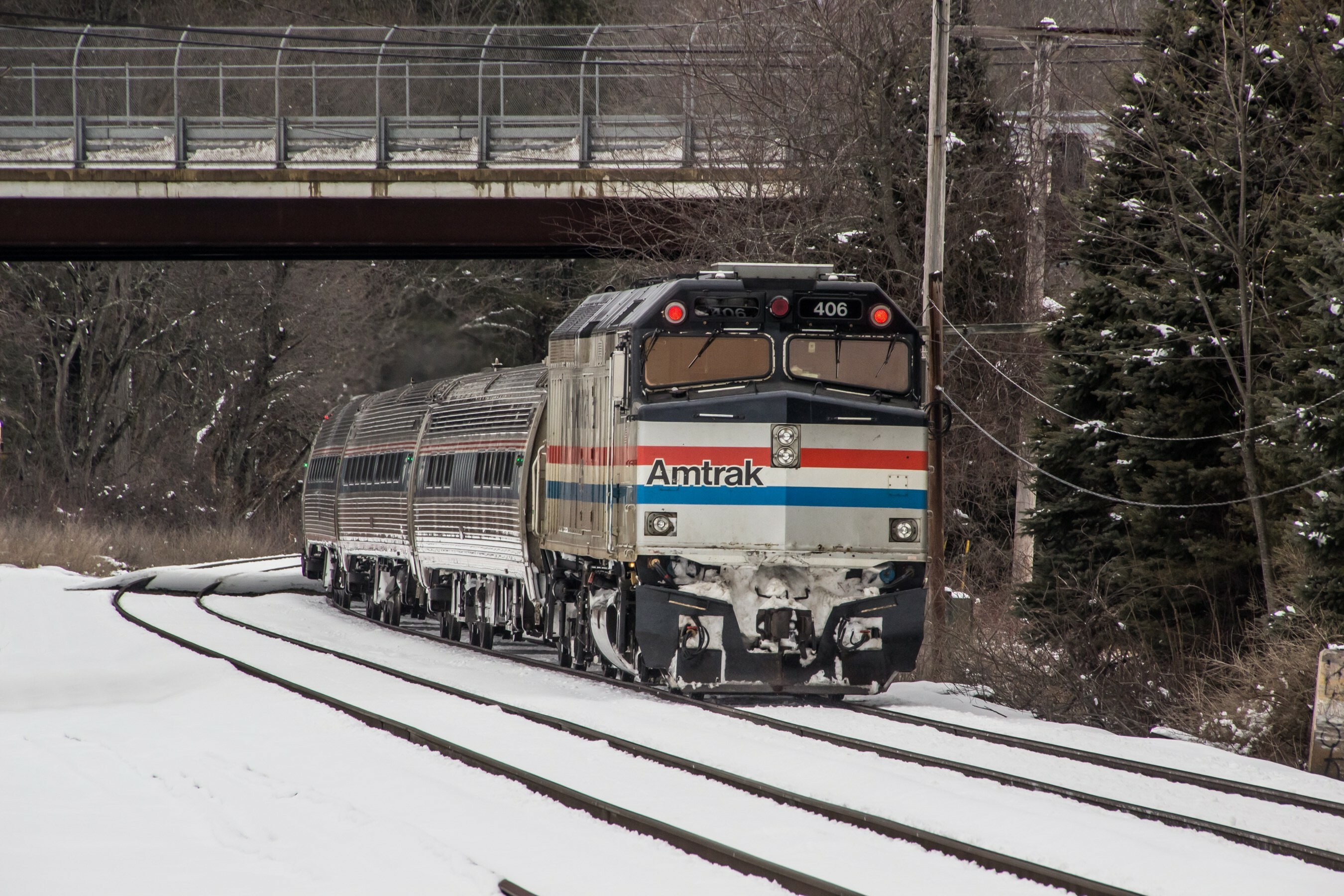 Over the LineAmtrak #683 trails over the State Line at Atkinson,N.H. from Haverhill,Mass.