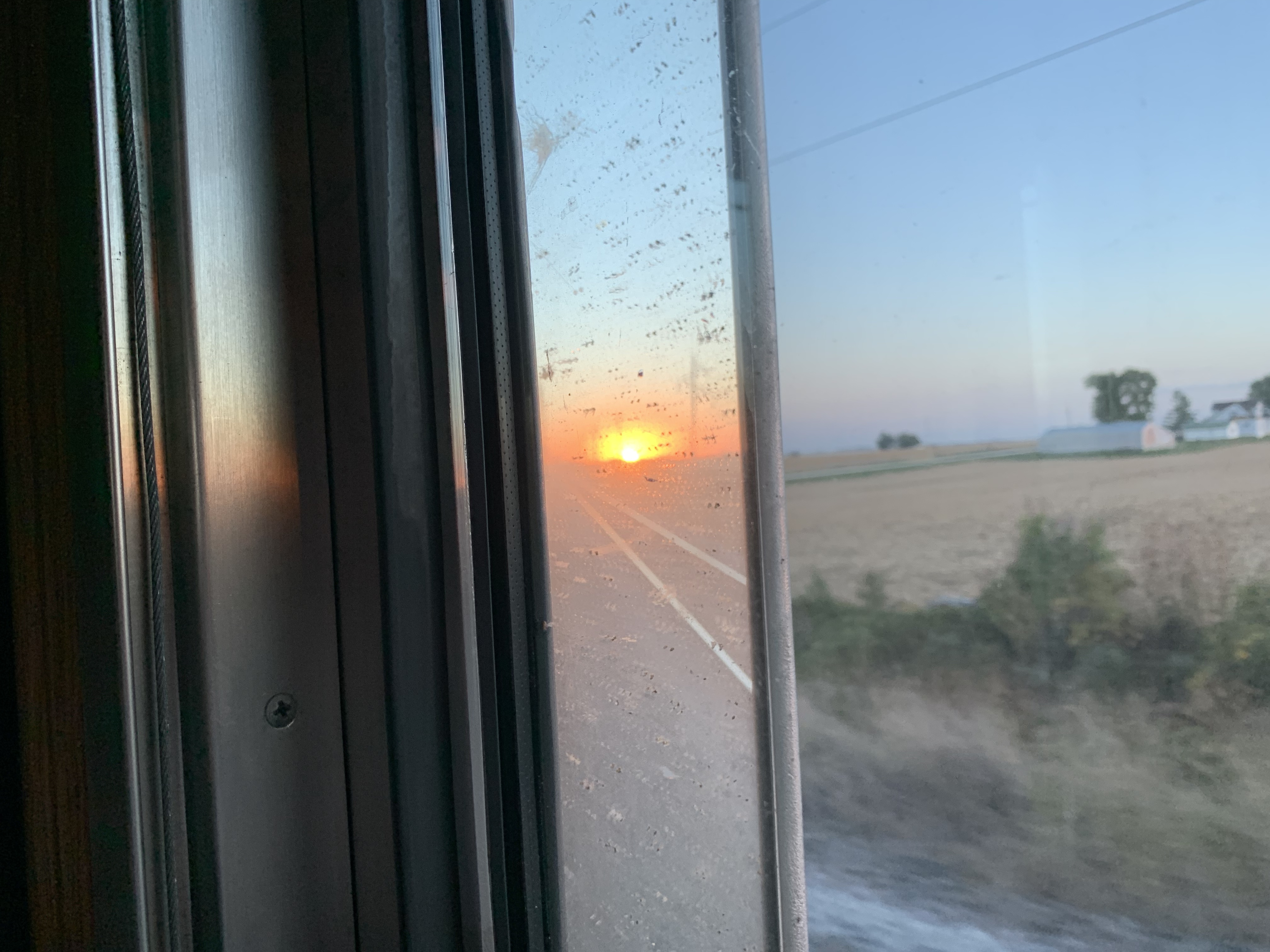 Iowa SunsetFrom the rear view mirror of Tioga Pass, behind California Zephyr 5