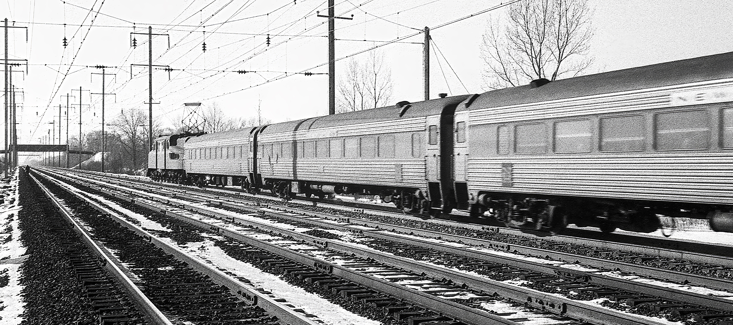 GG1 Potpourri #7: Westbound Train Off the New HavenIn the final photo in this series of photos of PRR's classic GG1's at Princeton Jct, NJ, 57 or 58 years ago, a GG1 forwards a train of New Haven cars making up what is rather obviously one of the Boston to Washington thru trains. Unfortunately film did not record the time a photo was shot, so I have no way to determine which train this was.