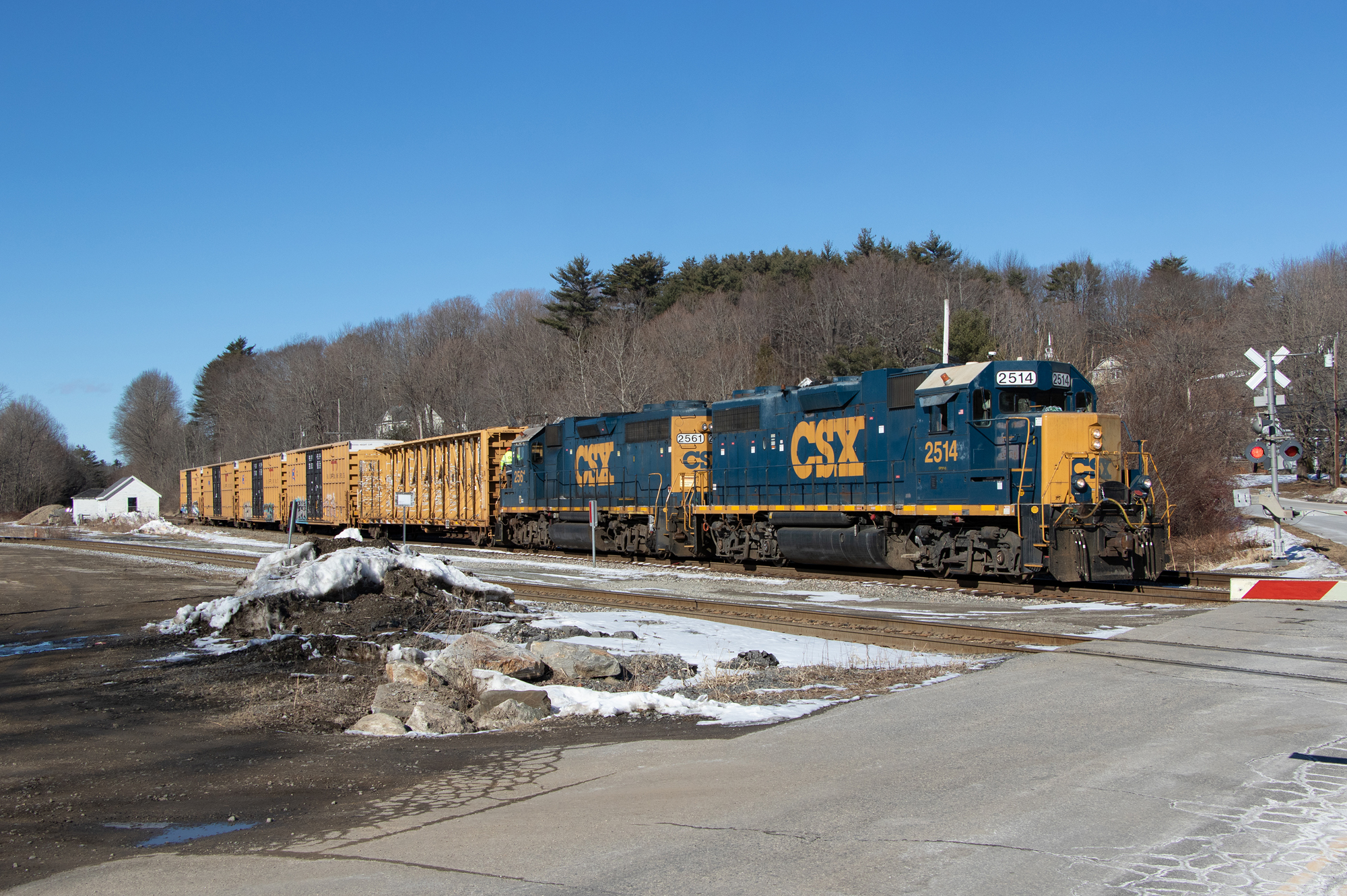CSXT 2514 Leads L053-19 at Danville Jct.After bringing up a train from Rigby and switching out International Paper in Auburn, L053 prepares to depart west from Danville Junction with CSXT 2514 - CSXT 2561 and five empties.