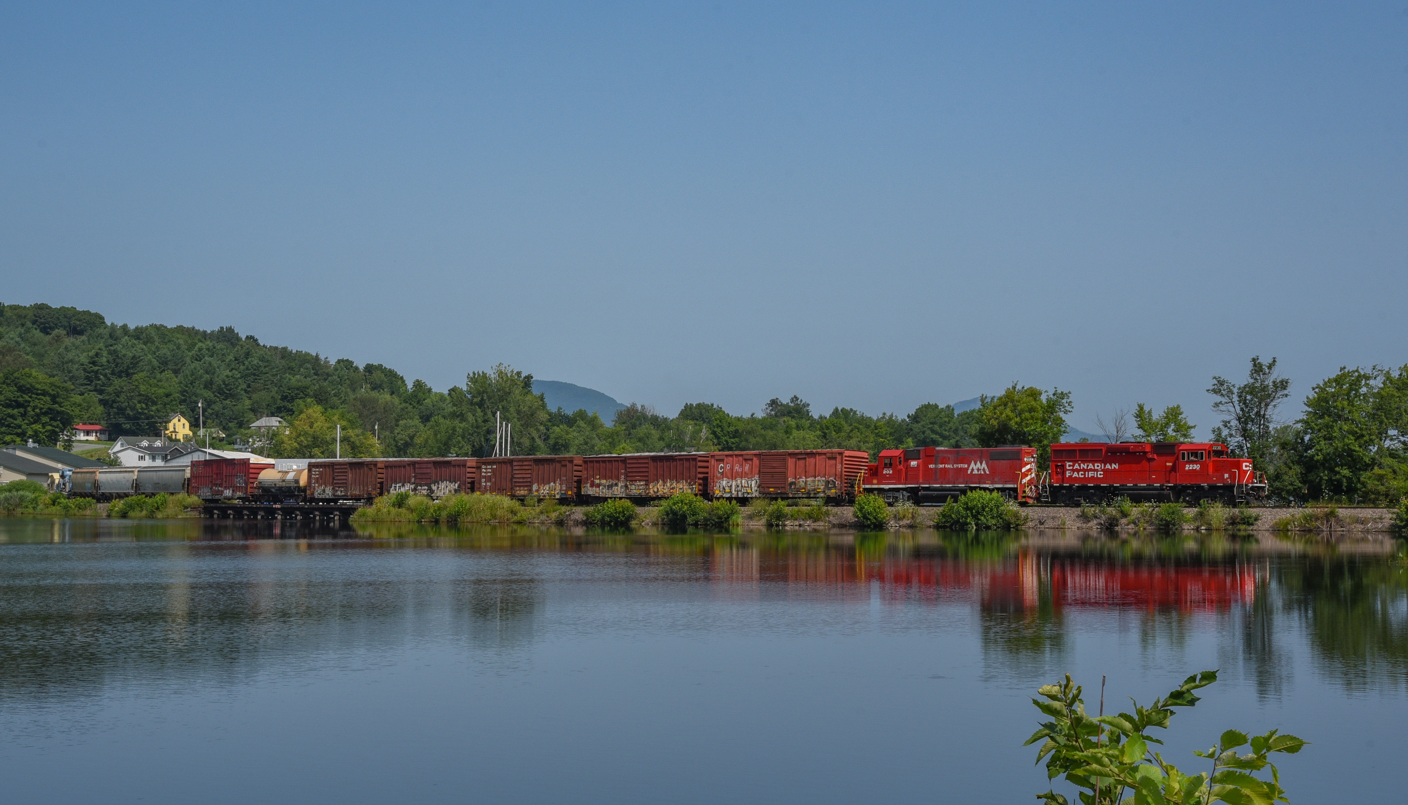 CP arrives Newport, VT CP/VTR with freight and belt cars arriving Newport, VT Photographed by Richard Deuso, July 27, 2024. Added to the photo archive by Richard Deuso, July 28, 2024. Railroad: Canadian Pacific. » Contact the person who posted this photograph.