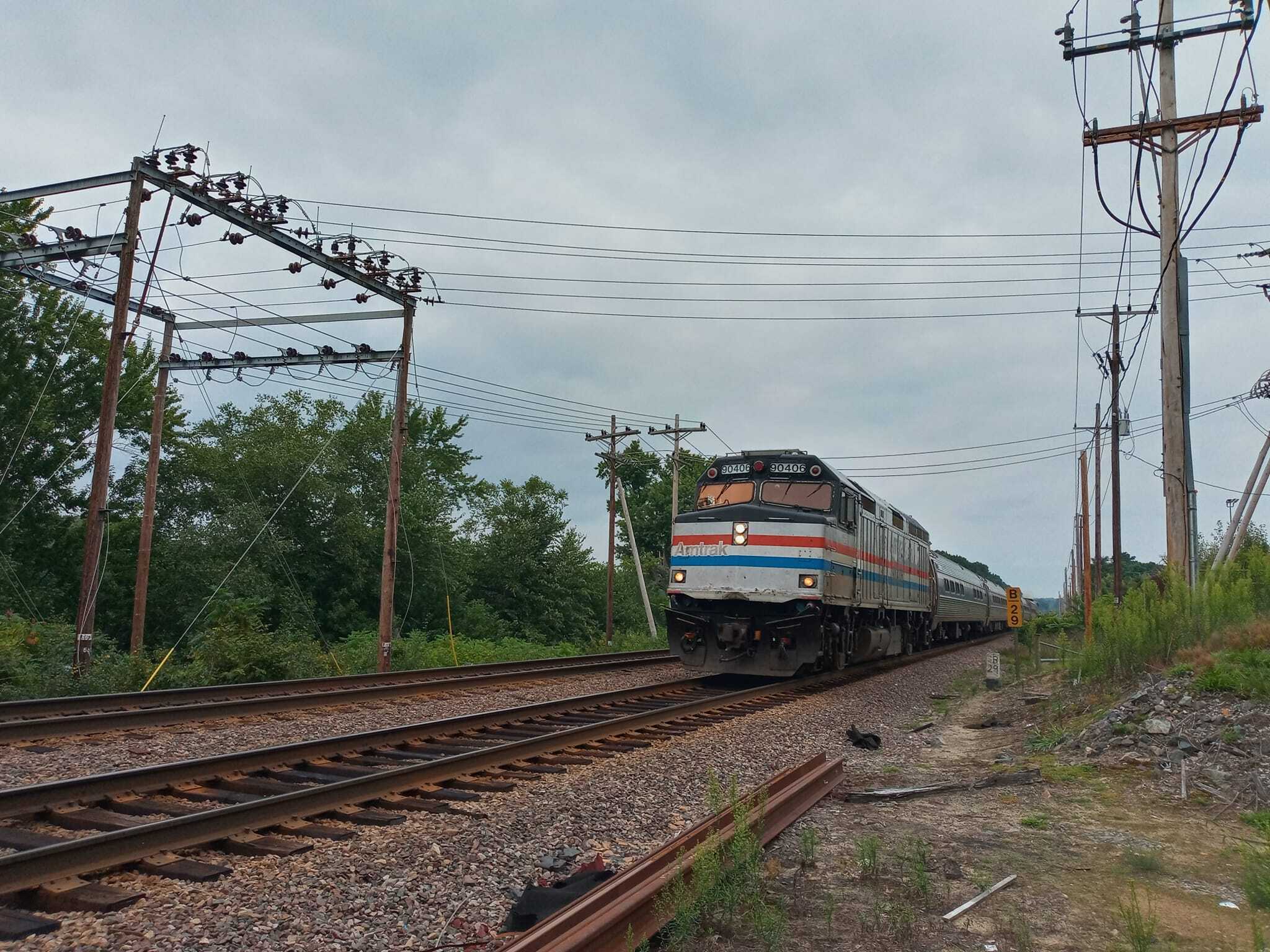 Amtrak 686Passing BW29 in North Andover MA on track 1 with AMTK 90406-4 Amfleets-1 Horizon & 145