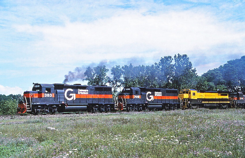 D&H + Susquehanna @ Mohawk, NY Running "Hell bent for leather". Photographed by Bruce Macdonald, July 31, 1988. Added to the photo archive by Bruce Macdonald, August 18, 2024. Railroad: New York, Susquehanna & Western. | Bruce Macdonald's awards: |        |