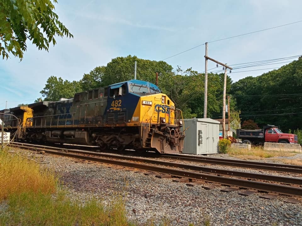 M427Passing thru Cemetery Crossing in Andover MA on track 1 with CSXT 482-476-5276 pulling a big train. 105 cars 20 Eimskips and an empty rail train with SDIX report marks. They had a total of 590 axles per the Andover detector. We would catch them again at Power Company Road in Tewksbury.