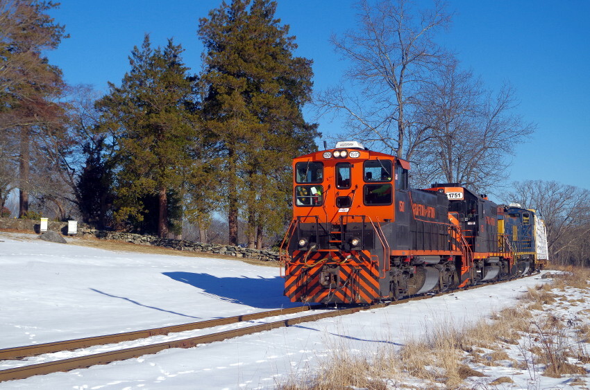 Grafton & Upton @ Grafton, Ma. The south bound will not waken the Beehives this time of year. Photographed by Bruce Macdonald, January 27, 2025. Added to the photo archive by Bruce Macdonald, January 28, 2025. Railroad: Grafton & Upton. | Bruce Macdonald's awards: |        |