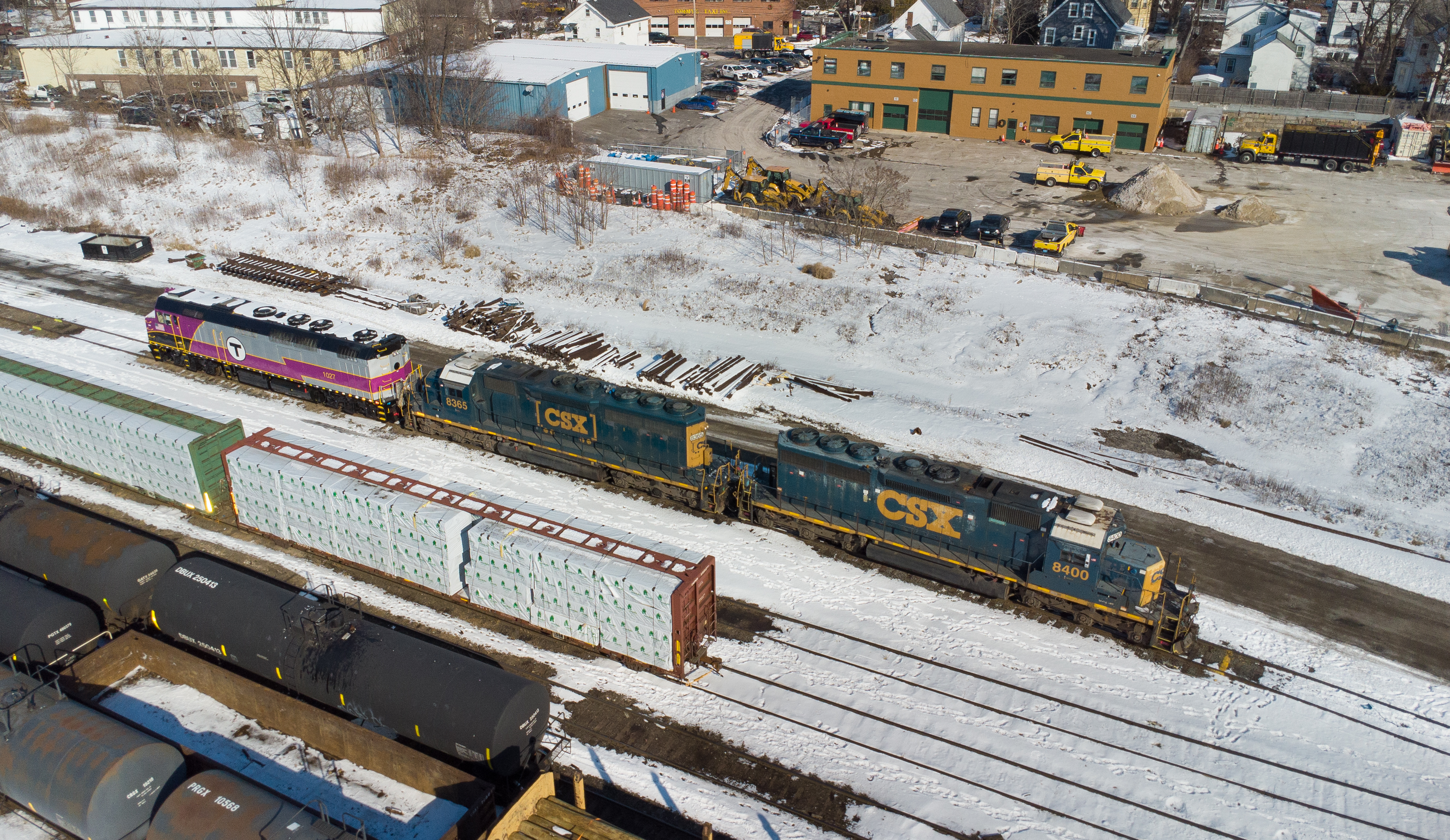 Taking a BreakThe power for the nightly L005 run to Attleboro rests at CSX's North Yard in Framingham, MA with CSXT 8400 - CSXT 8365 - MBTA 1027.
