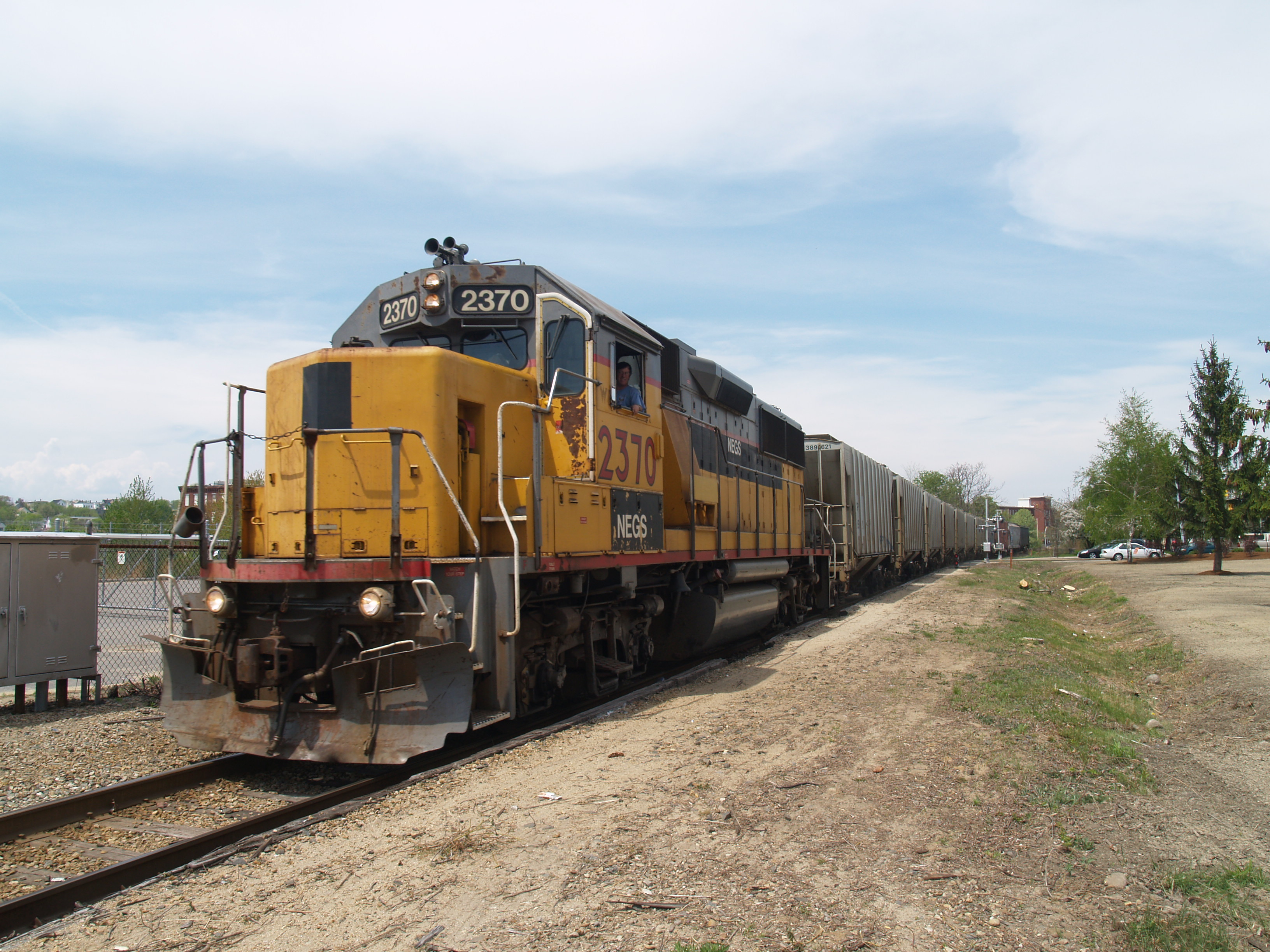 NEGS at ManchesterNew England Southern 2370 GP39-2 crossing Granite Street, Manchester, NH.