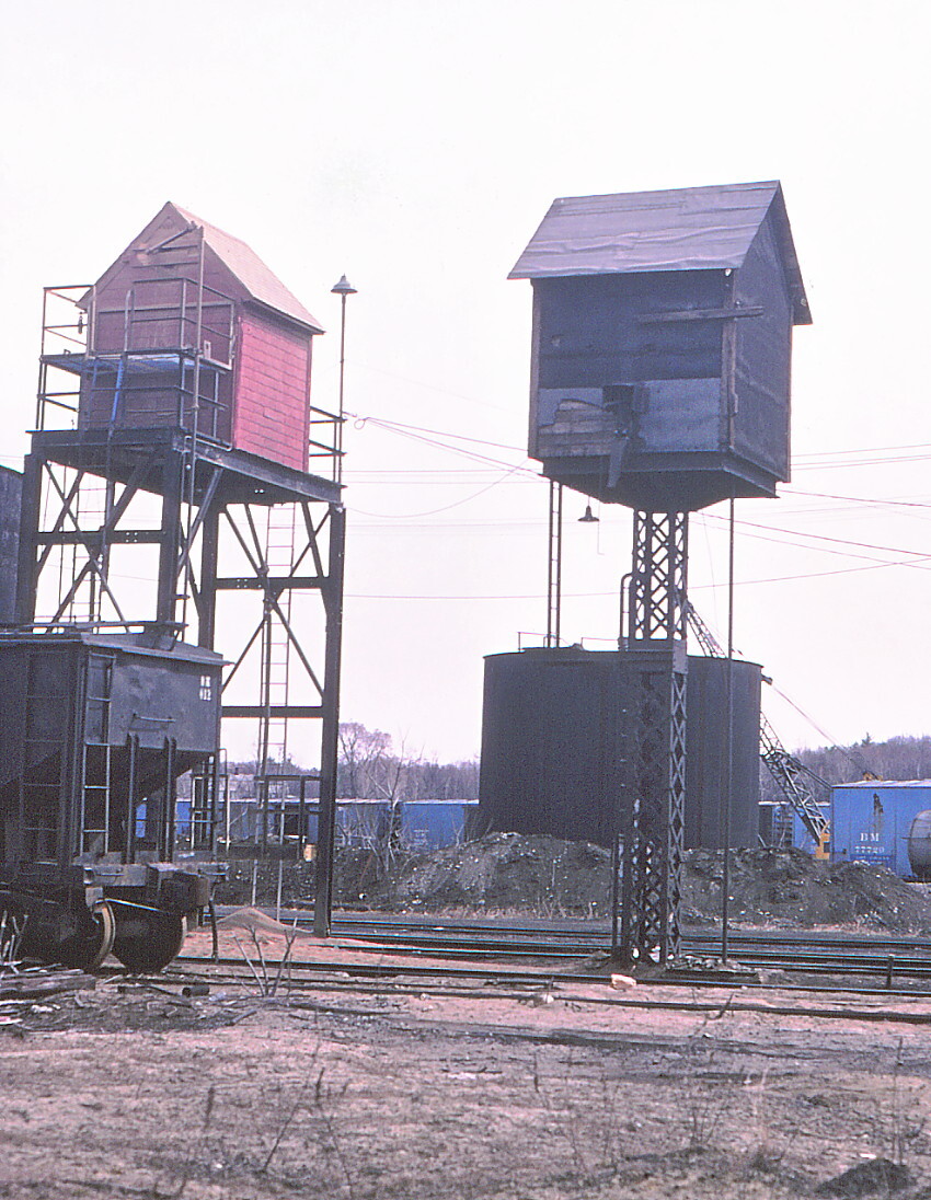 Boston & Maine @ East Deerfield, Ma. The old towers wait for their next request. Photographed by Bruce Macdonald, April, 1979. Added to the photo archive by Bruce Macdonald, April 24, 2025. Railroad: Boston & Maine. | Bruce Macdonald's awards: |        |