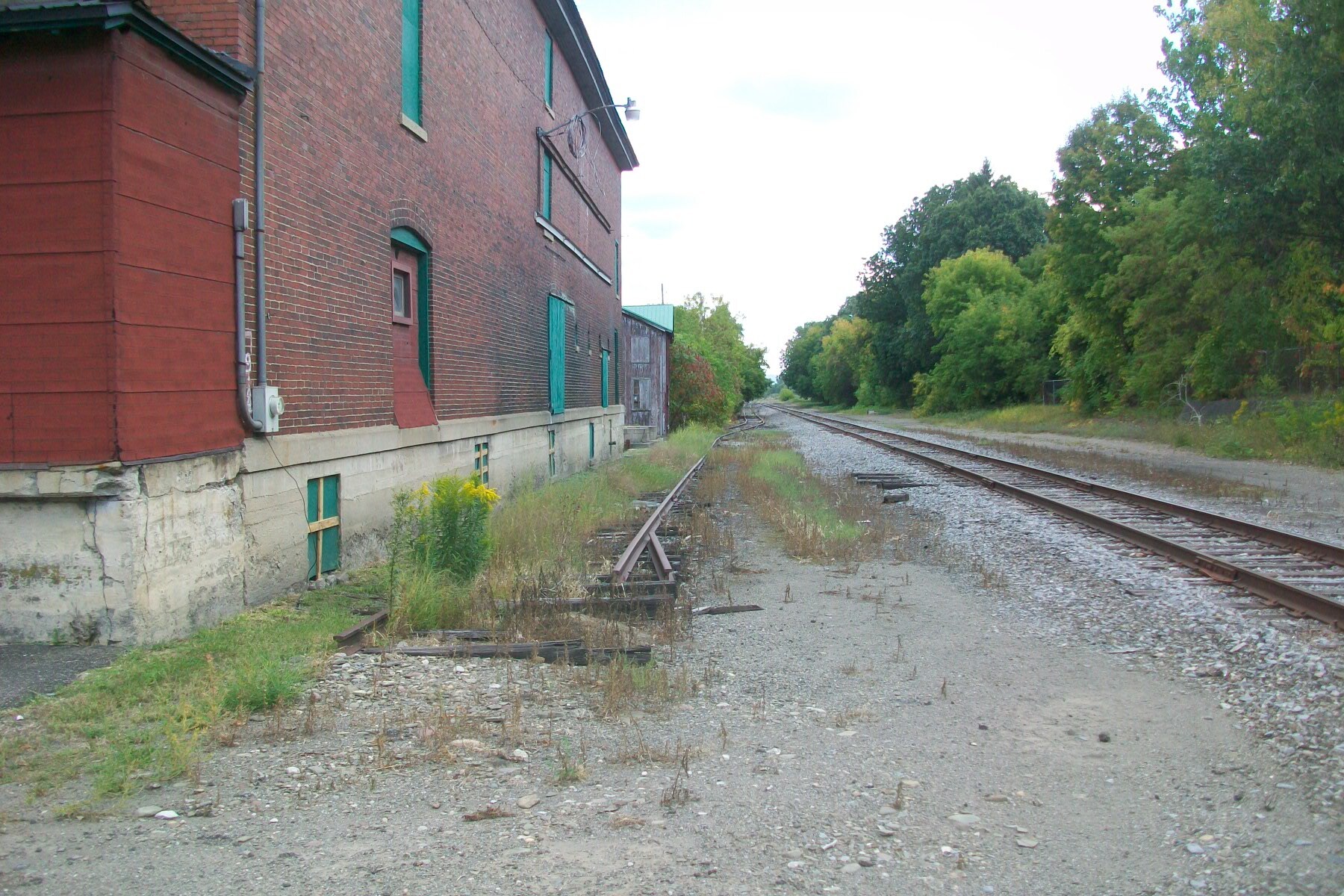Bath & Hammondsport RR: Bath, NY B&H main (ex Erie RR) as seen from Cameron St. Unused siding to this business is on the left side of the main Photographed by Chris Bigham, September 14, 2025. Added to the photo archive by Chris Bigham, September 23, 2025. Railroad: Bath & Hammonsport. » Contact the person who posted this photograph.