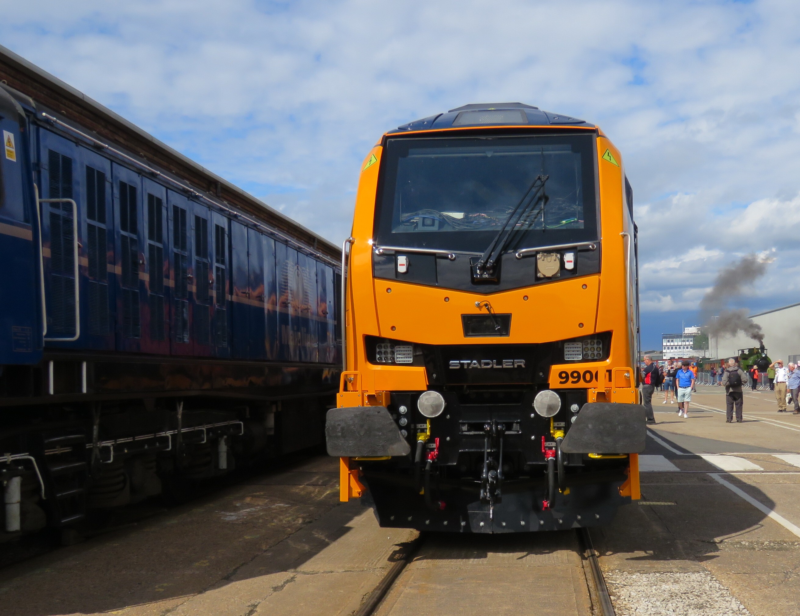 At The Greatest GatheringFresh out of the box, built by Stadler, class 99 99001, is the first of a new generation of hybrid freight loco, designed to operate on 25kV AC overhead wires, or with its 1790 kW Cummins stage V diesel engine.