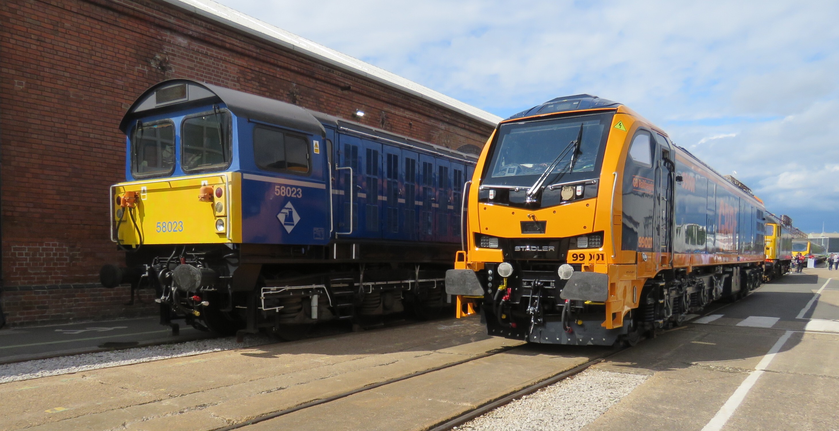 At the Greatest Gathering Semi vintage class 58 58023, and brand new class 99, 99001. Photographed by Adrian Brodie, August 1, 2025. Added to the photo archive by Adrian Brodie, October 3, 2025. » Contact the person who posted this photograph.