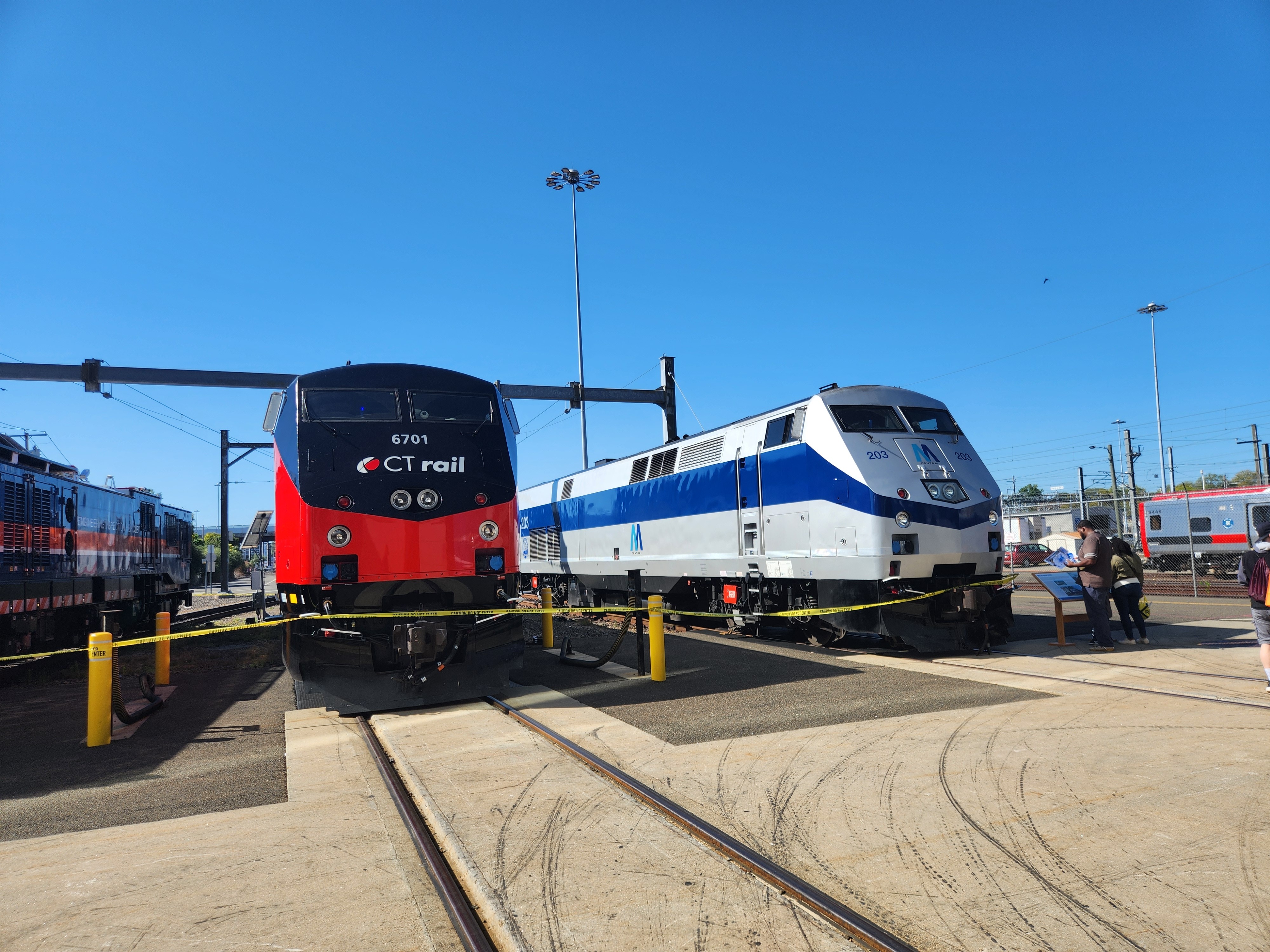 New Haven Open House 2025On display at the south end of the shop complex, the "MTA 1970s" P32AC-DM and a CTRail P40 (former Amtrak). The CT Rail unit typically runs on the Hartford Line commuter service from New Haven north to Hartford and Springfield. The unit was acquired from Amtrak and rebuilt at their Beech Grove Shops.