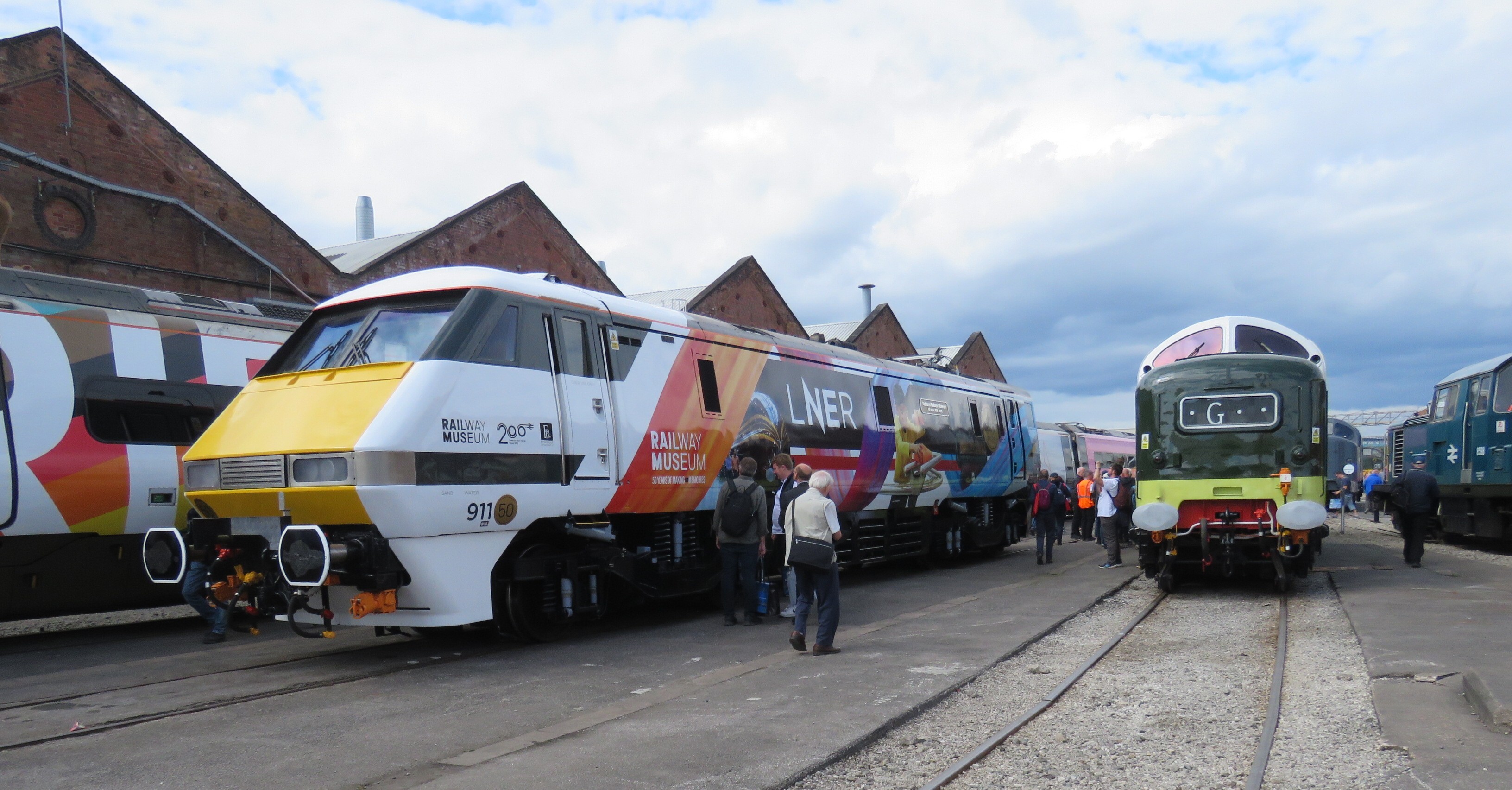 At The Greatest Gathering A general shot of two eastern region locos, including the famous Deltic on the right. Photographed by Adrian Brodie, August 1, 2025. Added to the photo archive by Adrian Brodie, October 8, 2025. » Contact the person who posted this photograph.