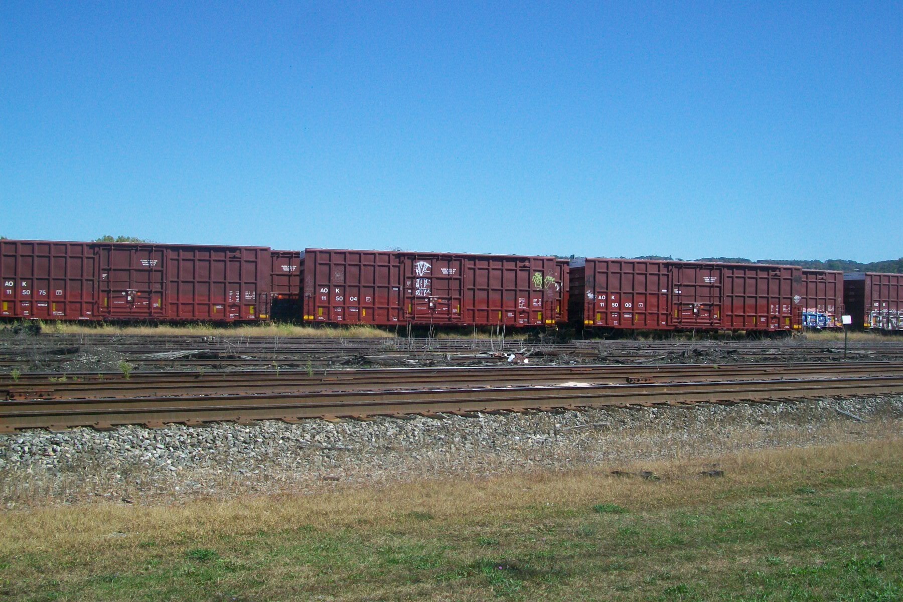 Lehigh Railway: Sayre, PA AOK boxcars stored in the Sayre yard Photographed by Chris Bigham, October 10, 2025. Added to the photo archive by Chris Bigham, October 8, 2025. Railroad: Owego & Hartford Railway. » Contact the person who posted this photograph.