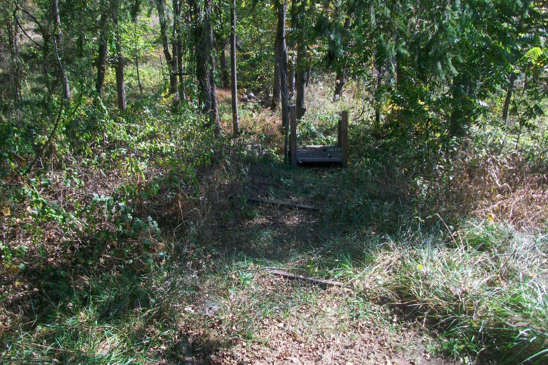 Chestnut Ridge Railway: Little Gap, PA Track still in place before they cross Little Smith Gap Raod. Photographed by Chris Bigham, October 4, 2025. Added to the photo archive by Chris Bigham, October 12, 2025. » Contact the person who posted this photograph.