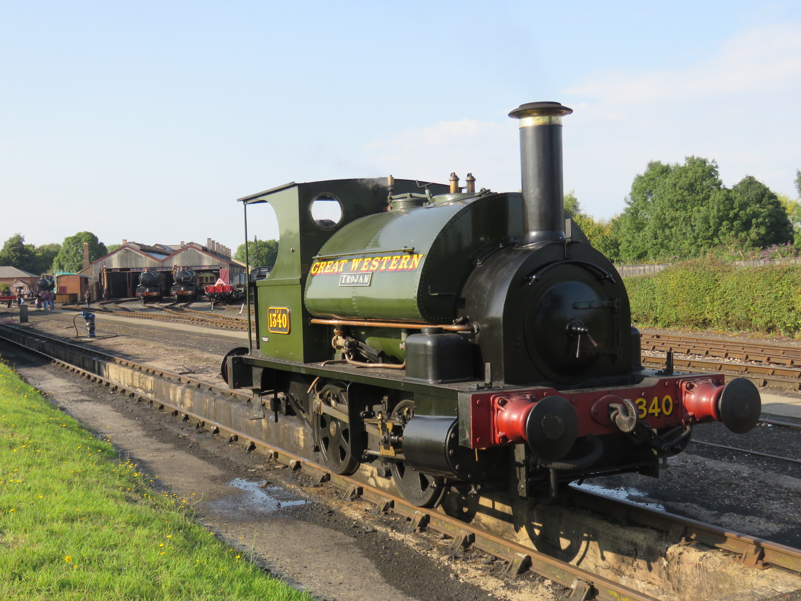 Trojan at DidcotGWR 0-4-0 saddle tank 1340 Trojan rests over the ash pit, at the end of a work day.