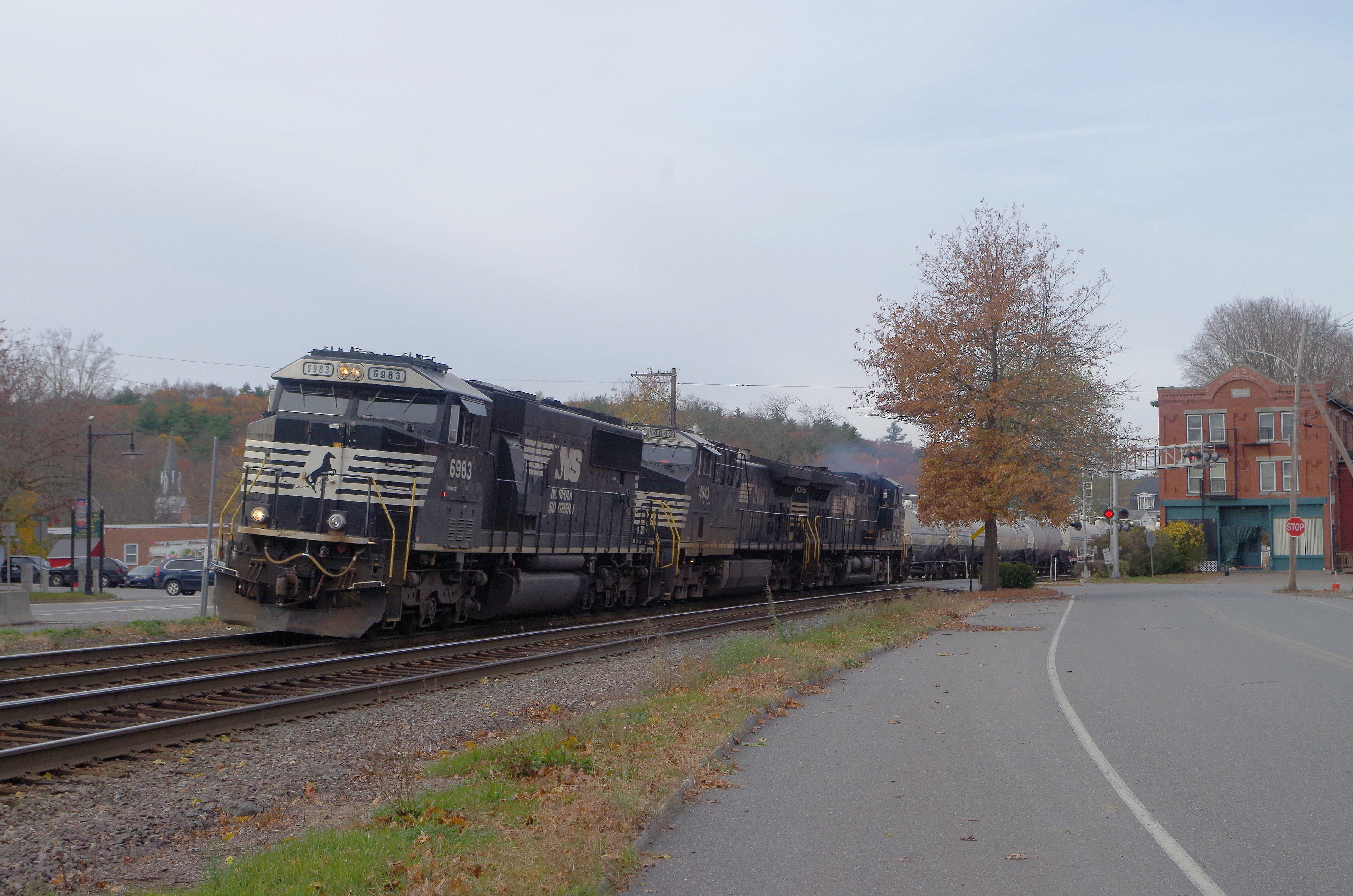Norfolk Southern @ Shirley, Ma. EDSA slows its gallop as it passes the Davis Building and nears its destination of Ayer. Photographed by Bruce Macdonald, November 7, 2025. Added to the photo archive by Bruce Macdonald, November 7, 2025. Railroad: Pan Am Southern. | Bruce Macdonald's awards: |        |