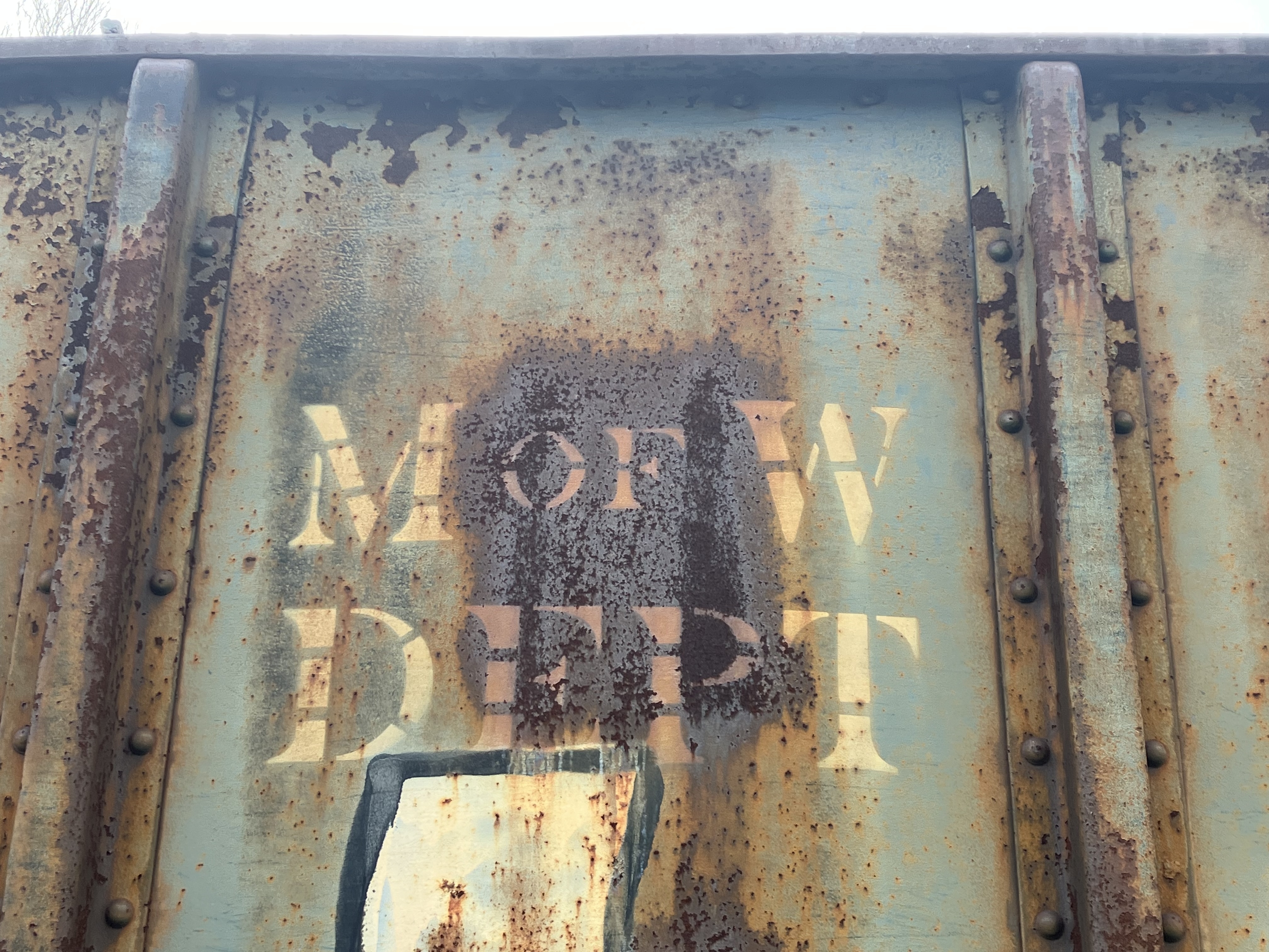 Old ballast carCloseup of the oldest layer of lettering on one of the ancient ballast hoppers at Eagle Bridge: Delaware &.Hudson Maintenance of Way Department.
