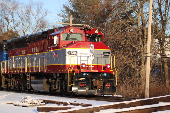 MBTA NNEPRA OCSMBTA 1129 leads the MBTA OCS west thru CP-Plaistow (Plaistow NH) this afternoon.