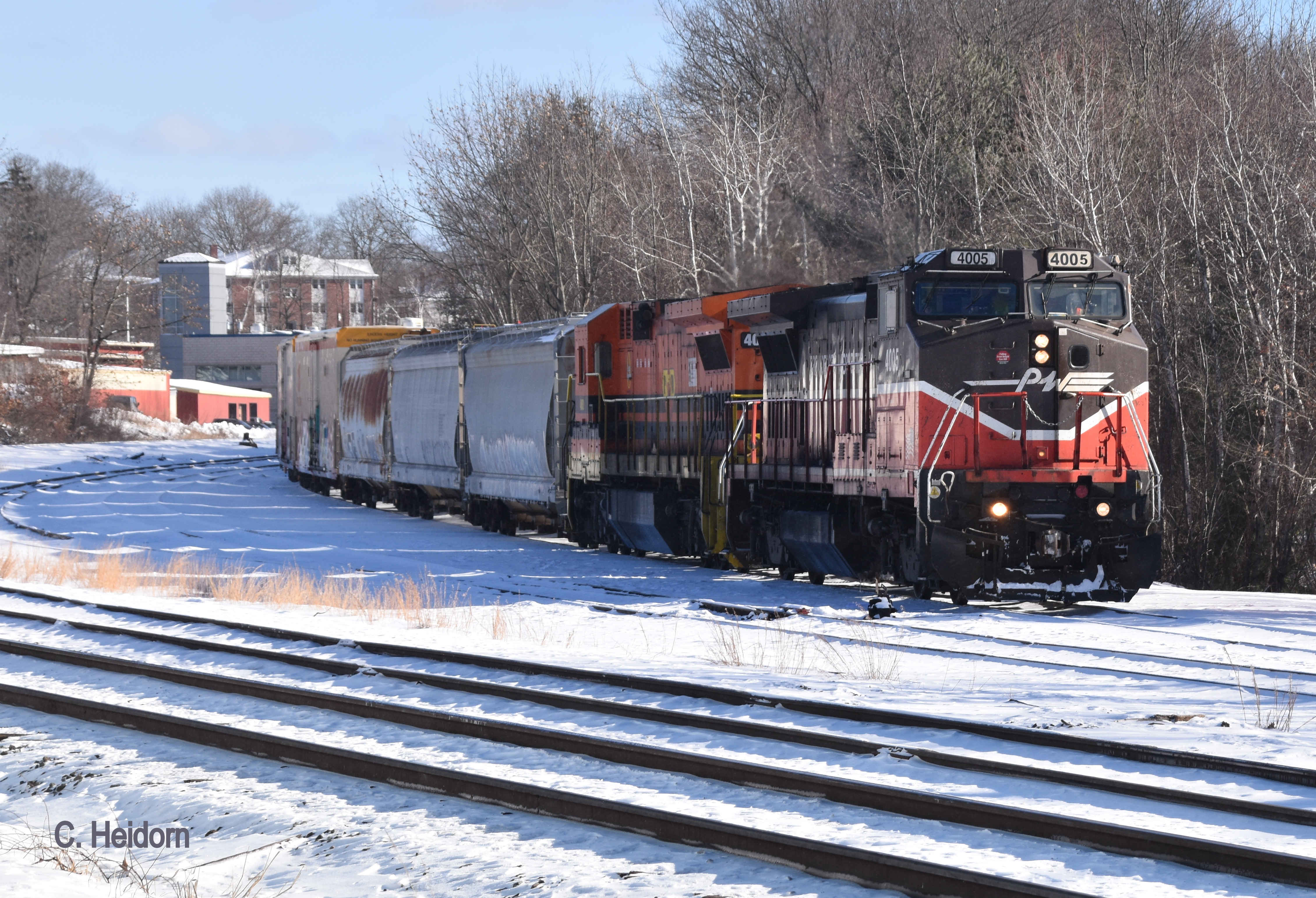 P&W 4005 in Gardner MA4005 lead locomotive pulls freight into Gardner Yard at the West end on a very brisk December day.