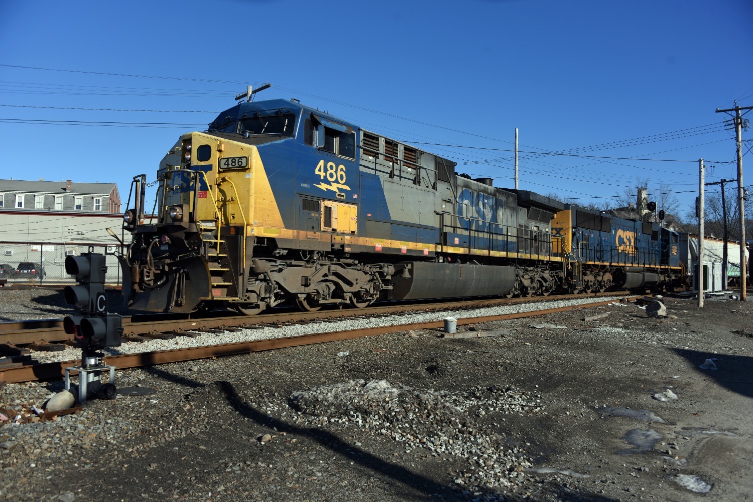 YN2 LeaderA seemingly very late arriving M427 (09:57) with a nice YN2 paint leader and only 2 units, on the east wye at Ayer, MA.