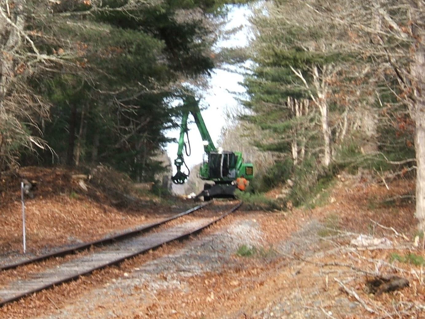 Approaching North Falmouth MANorthern Tree cutters are working towards the siding switch in North Falmouth MA. Getting close to the end of the cutting at MP 6.80 at County Road North Falmouth MA RR crossing