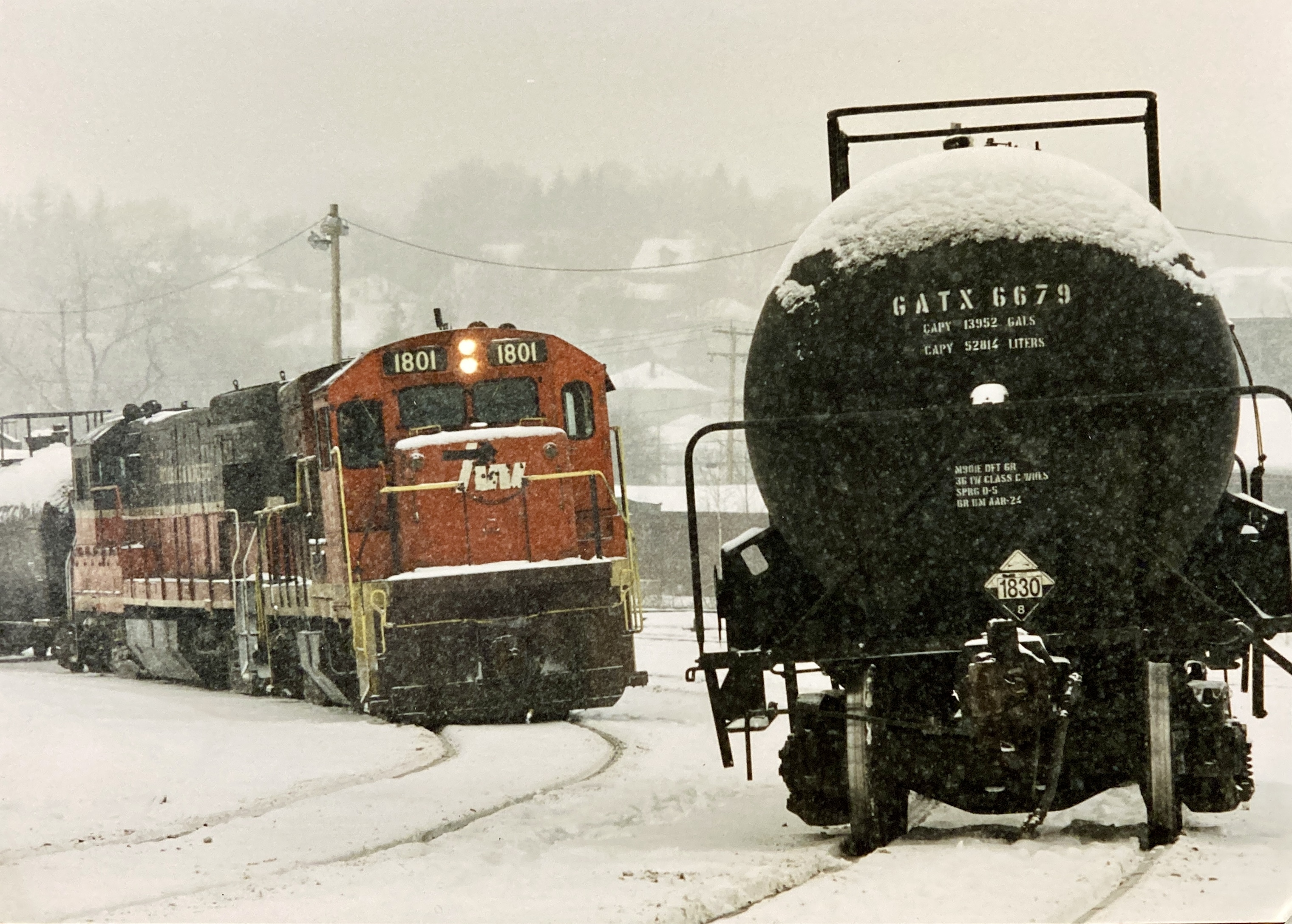 Gardner MaPW U18B along with a U23B ( I think ) working Gardner yard on a snowy February afternoon in 1996