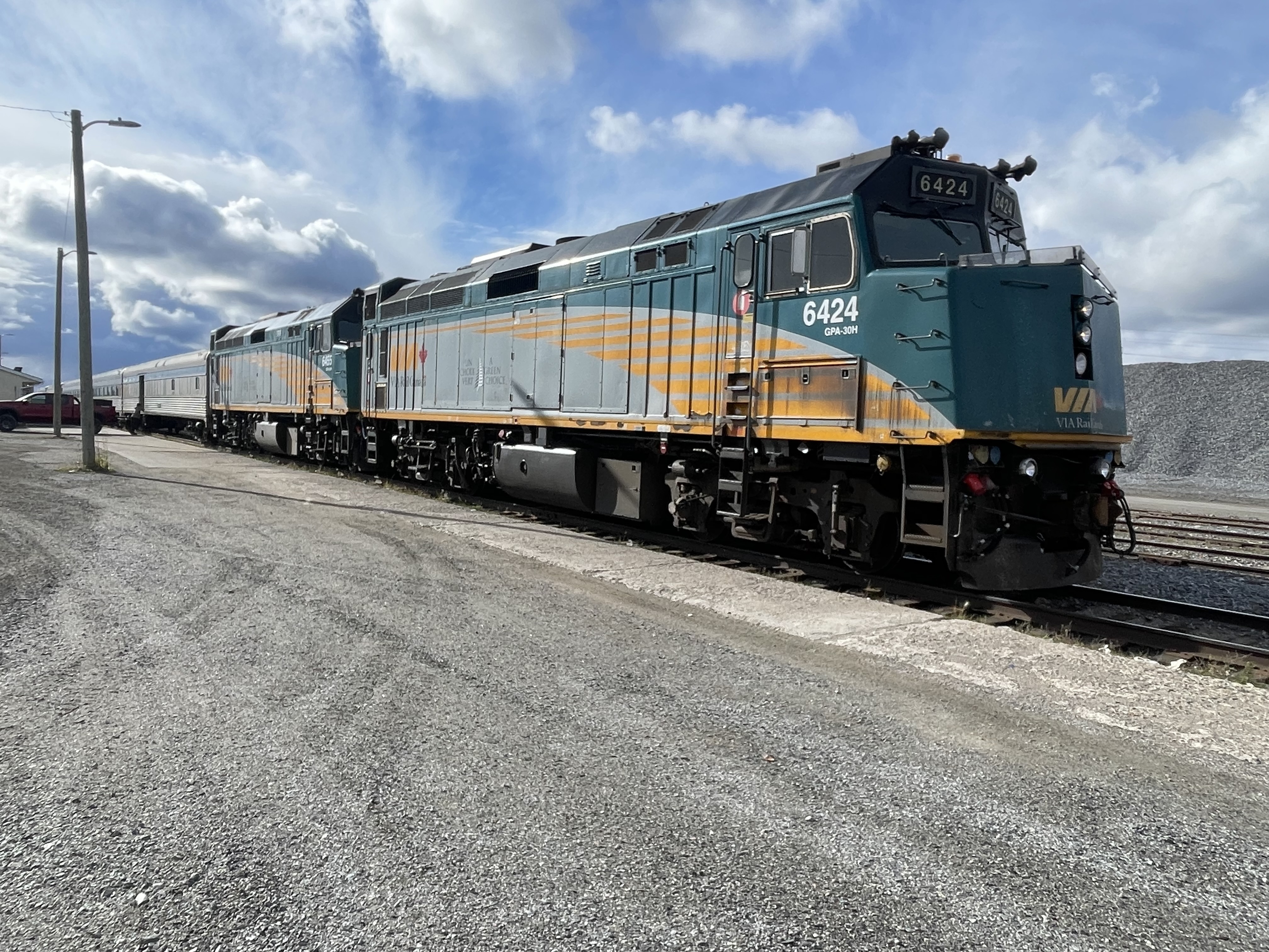Via Rail Train 693Via Rail GPA-30H #6424 on train 693 at Thompson, Manitoba Canada station for servicing. The train will continue to Churchill, Manitoba the next day.