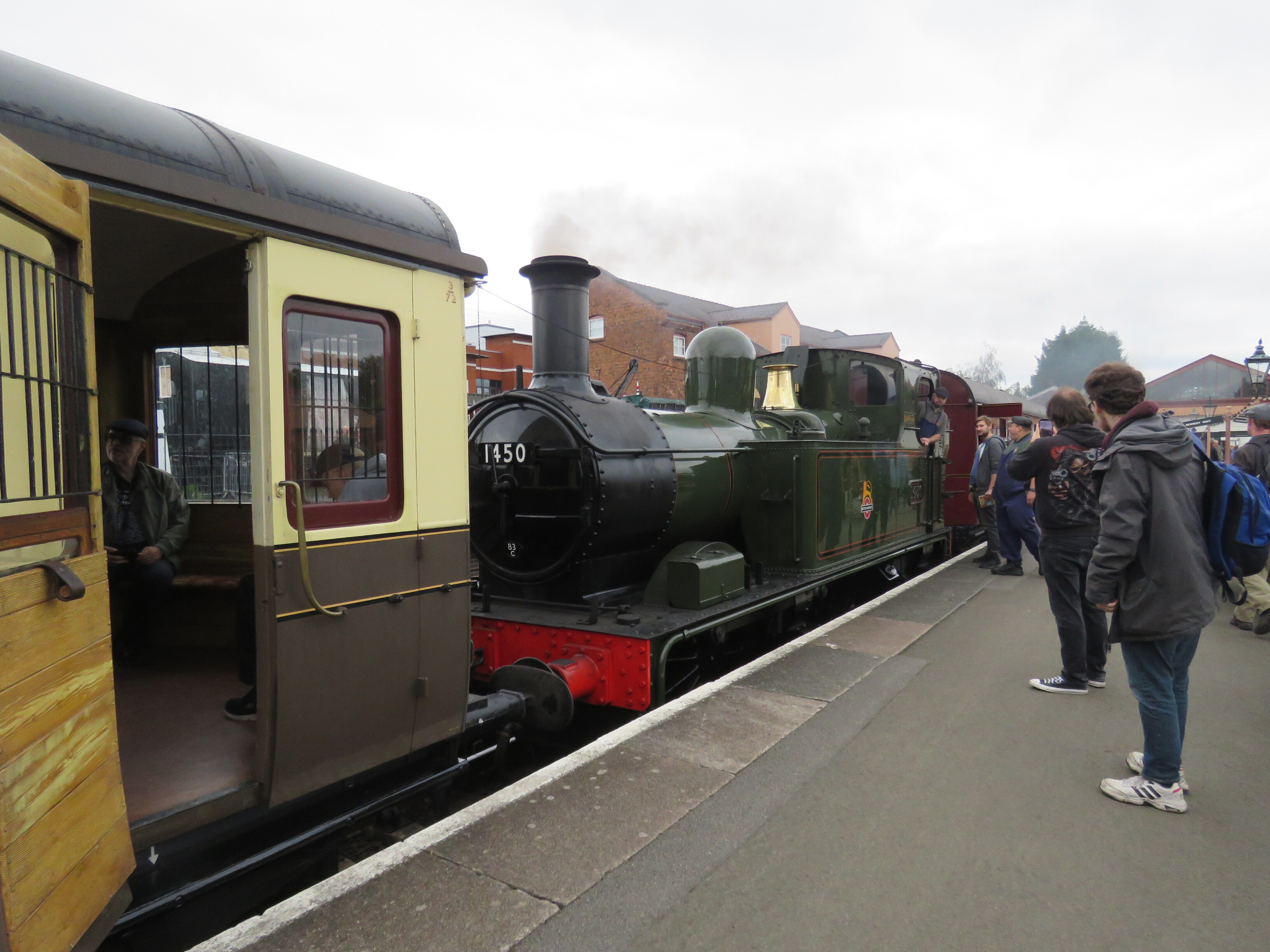 1450 at KidderminsterGWR 0-4-2 tank 1450 on the auto-train at Kidderminster station.
