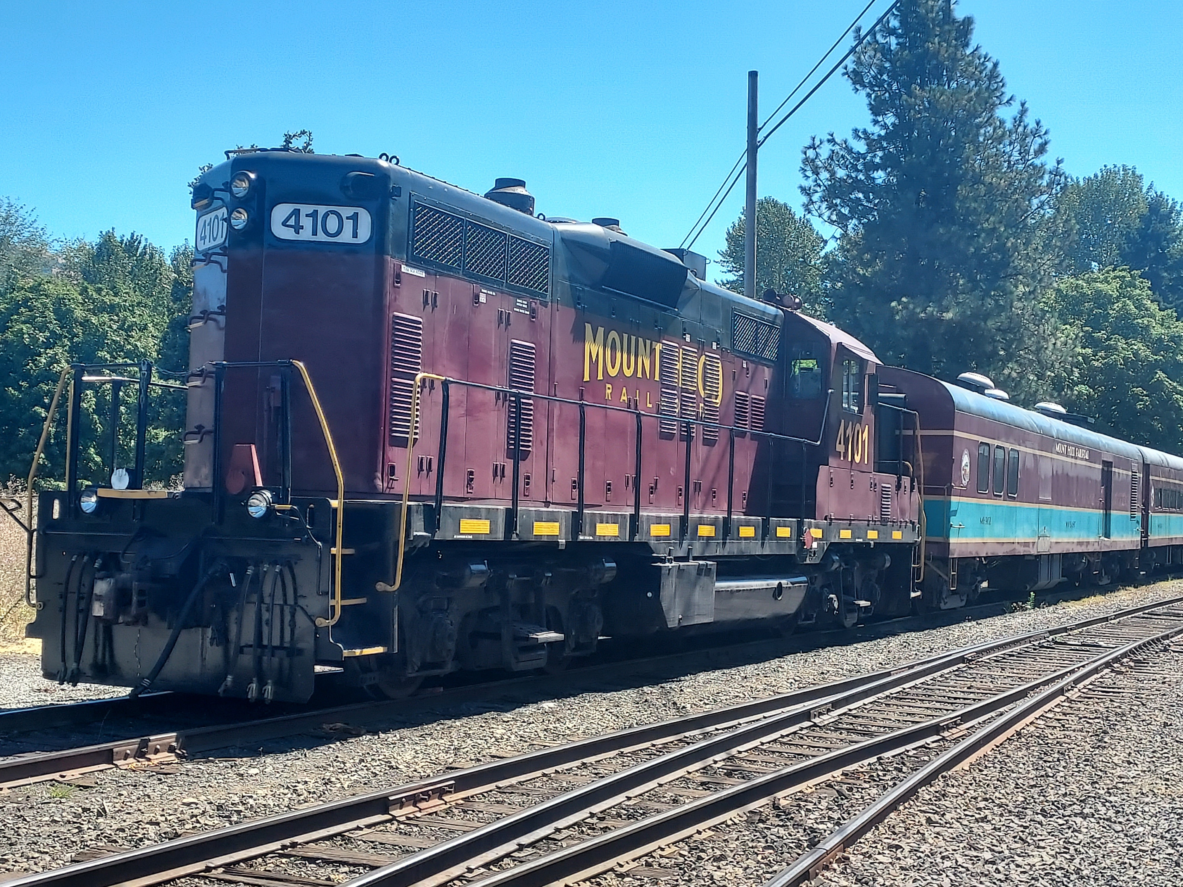 Waiting at Hood RiverMount Hood RR #4101 is awaiting its next departure at the railroad's layover yard in Hood River, OR. The shortline operates excursions and freight service between a Union Pacific connection at Hood River and Parkdale, OR, in sight of the railroad's namesake mountain.