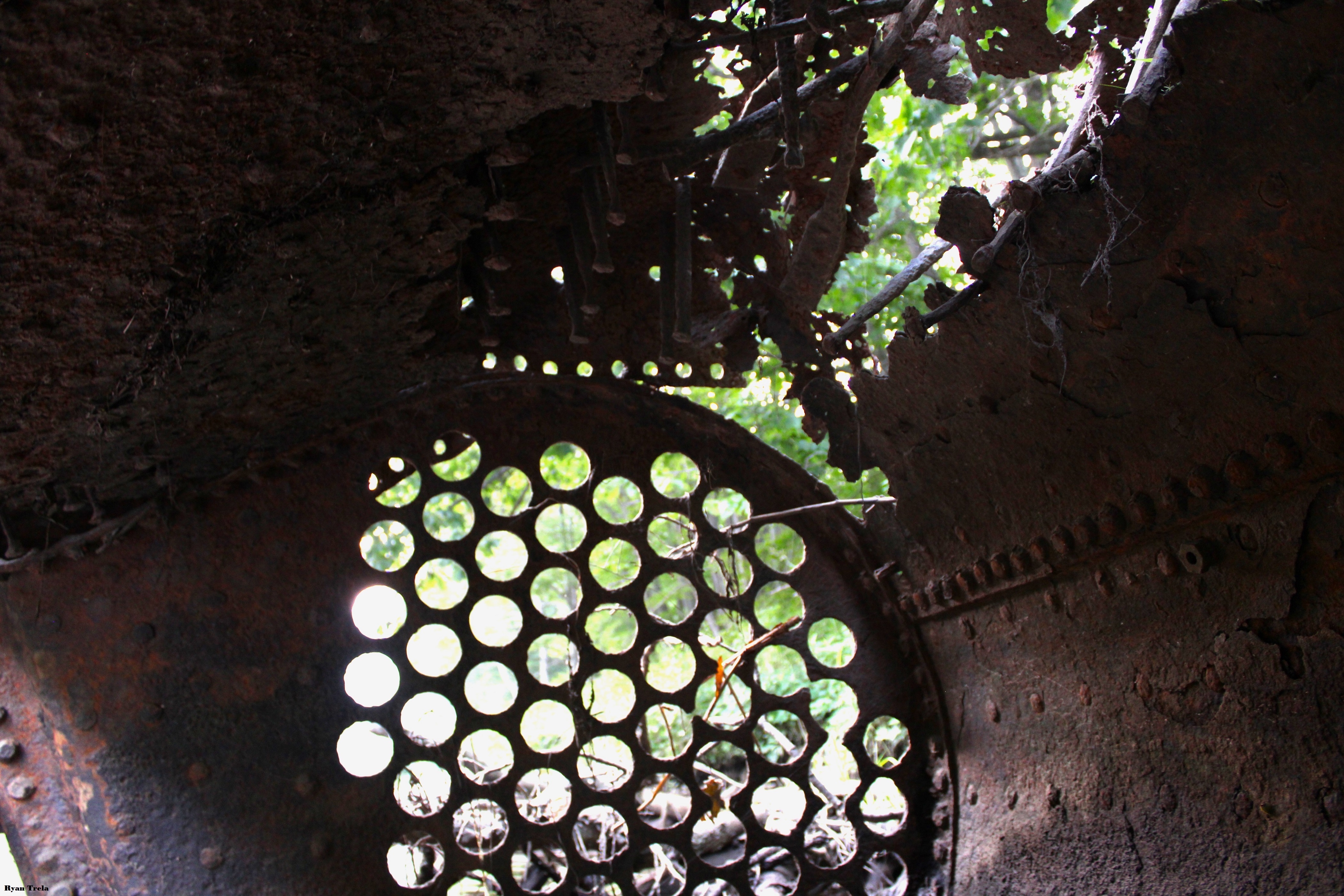 Old Boiler of HT&W No.1?I've posted a picture of this before but I decided to examine this a little closer during the warmer months. Could this possible be a part of HT&W engine N0.1? A few years back I came across a old postcard from the 1930s or 40's with a picture of a old locomotive boiler mounted on a platform sitting in the middle of water. It said that it was the old boiler from HT&W engine No.1 which was repurposed and used as a "mobile power source" mounted on a platform and trucks. It said at some point it got stranded in a flood in the Sherman Reservoir and it has been there since. I saw this old section of boiler on the edge of the reservoir when it was low and made me wonder could this possibly be it?. I stuck my camera inside and took a photo of the inside of the boiler just for a different perspective