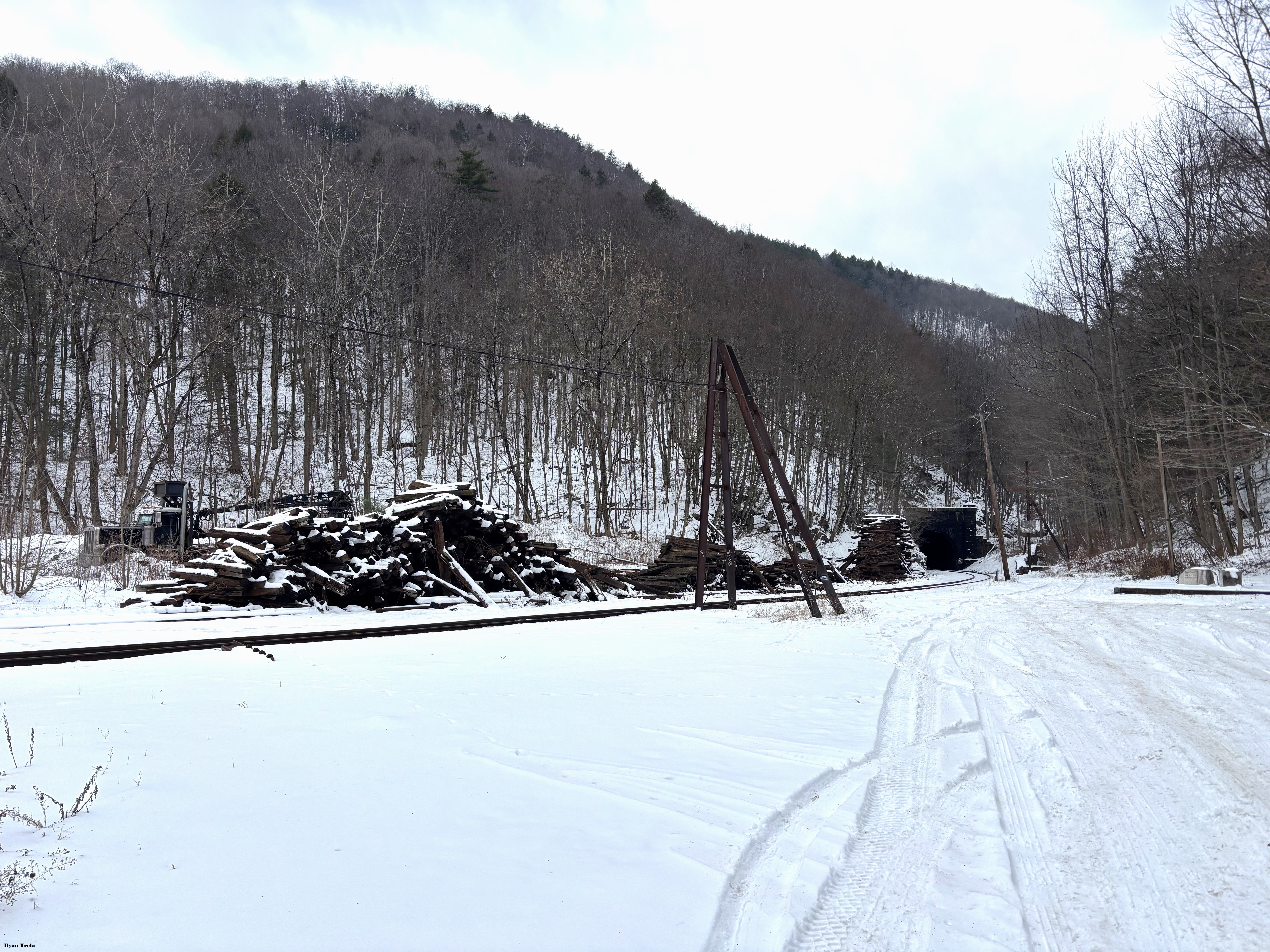 The massive pile of ties had significantly decreased since the previous week at the east portal of Hoosac Tunnel