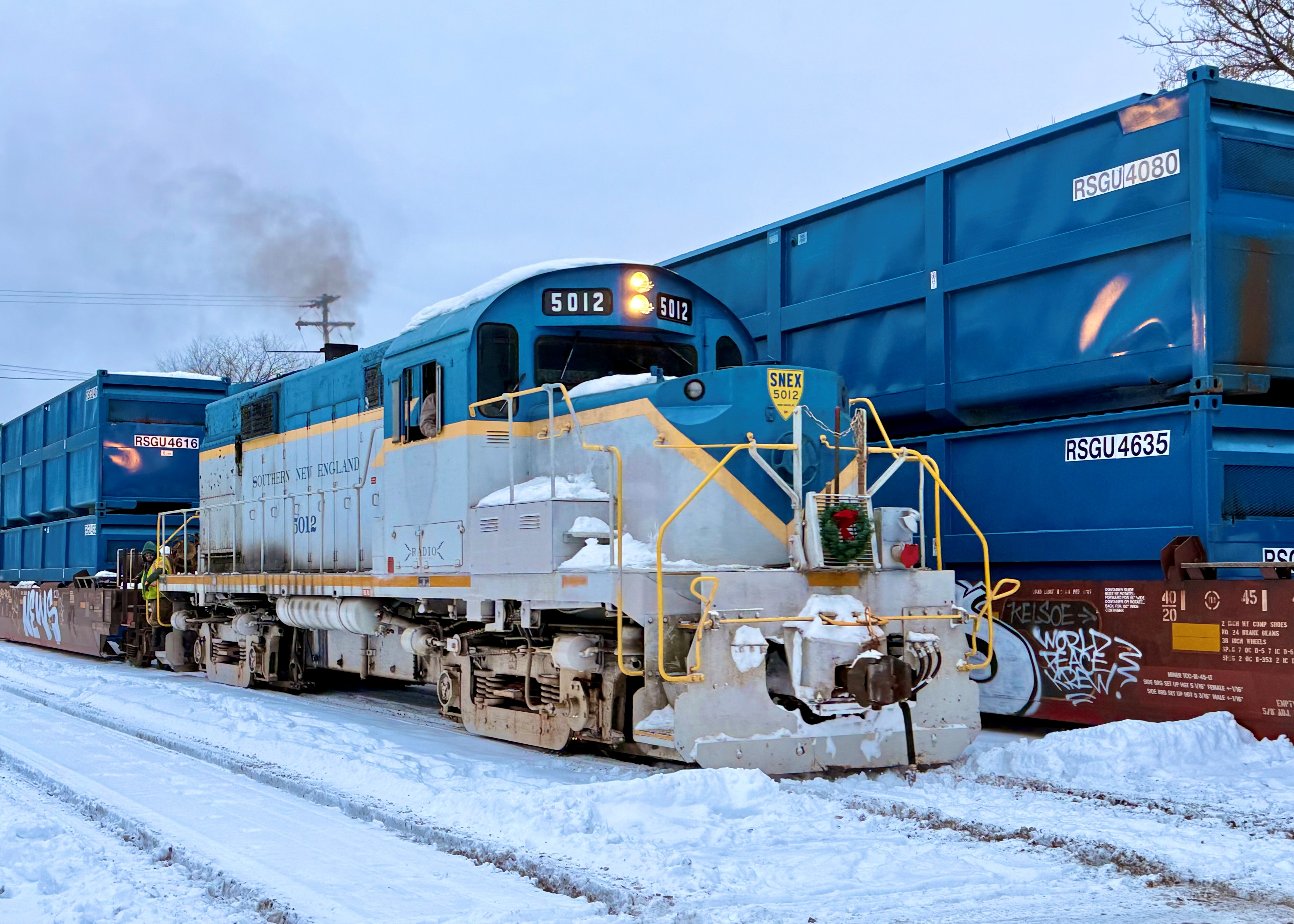 Battenkill #5Right time on the right day!... I just happened to be driving by the Battenkill RR interchange in Eagle Bridge, NY @ 5pm on February 3, 2026... Nothing makes you hit the brakes faster than seeing "anything" ALCO operating in revenue service 64 years later... RS-36 SNEX #5012 shuffling double-stack trash containers for pick up by Norfolk & Southern... A very memorable moment;-)