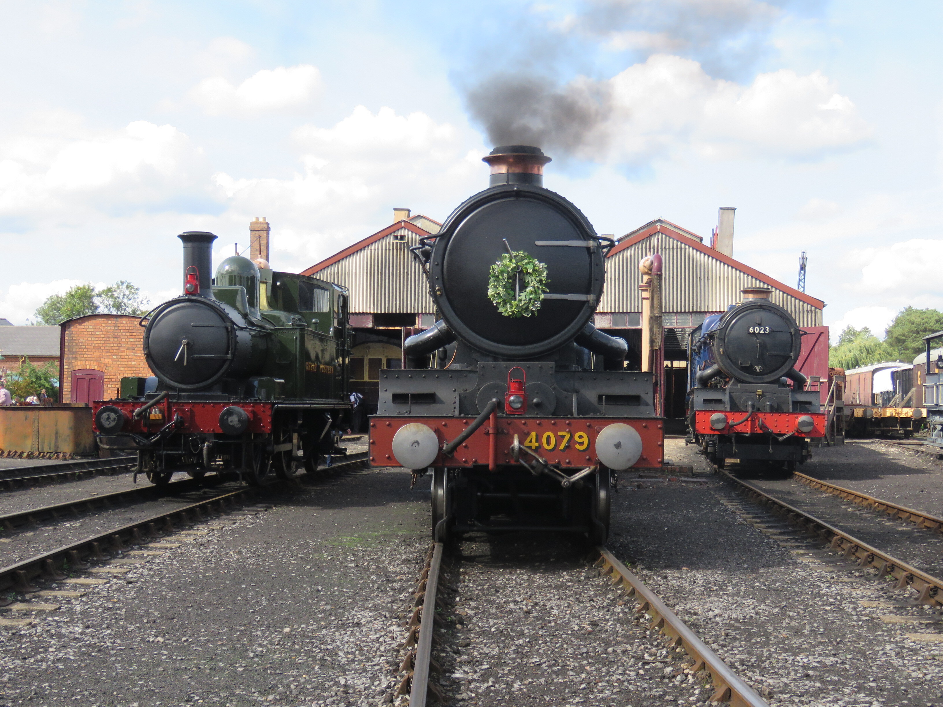 In front of the shedAt Didcot, the changing line-up during the steam gala.