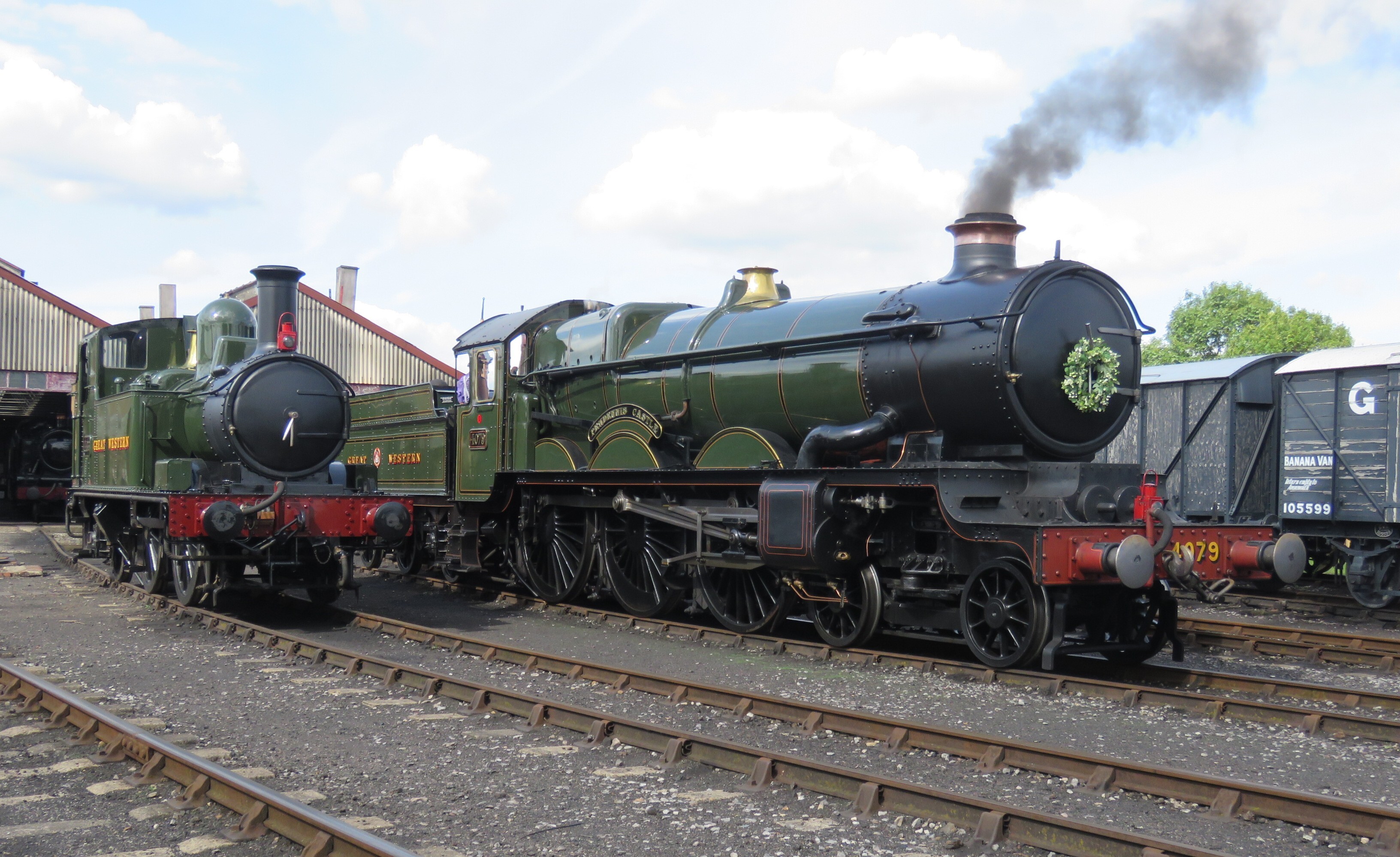 Pendennis Castle at DidcotThe much travelled GWR Castle class 4-6-0 4079 Pendennis Castle in front of the shed, at Didcot.