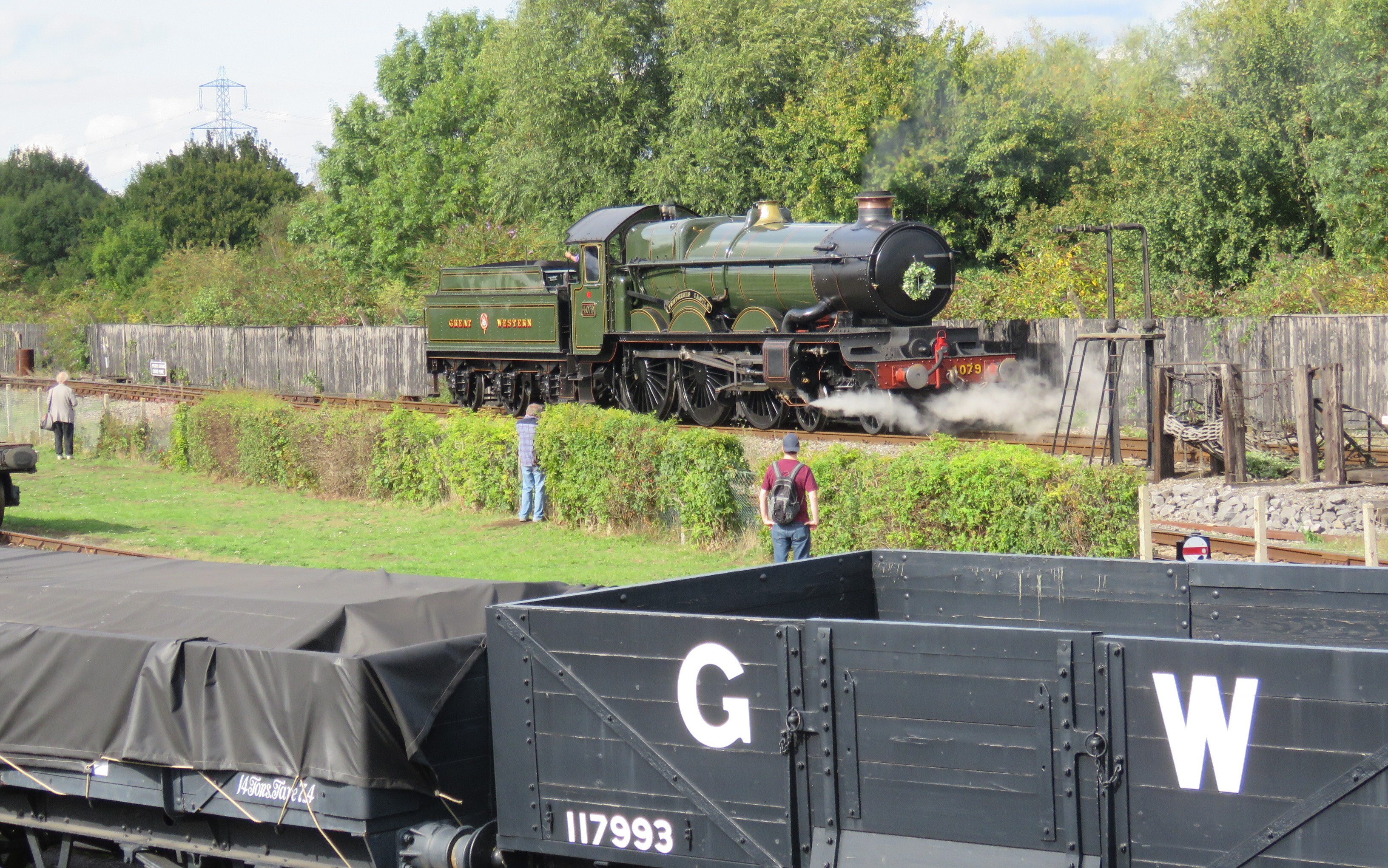 Pendennis Castle at DidcotGWR Castle class 4-6-0 4079 Pendennis Castle reverses towards its consist on the main demonstration line.