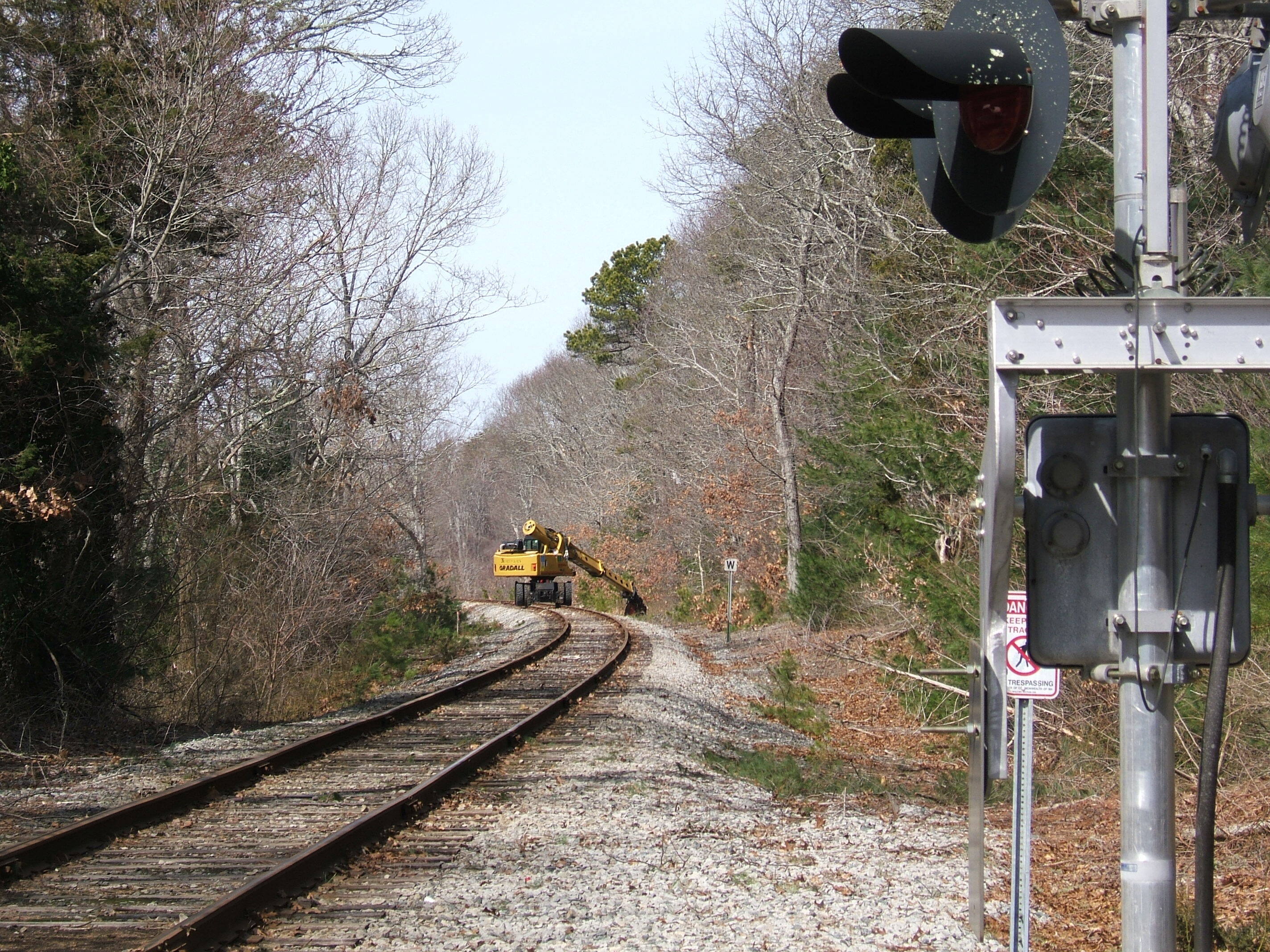 Northern Tree Services brush cutter at workBrush cutter working ahead of the tree cutter crew today on the Cape main approaching Talbots Point Rd RR crossing MP 66.56 in Sandwich MA