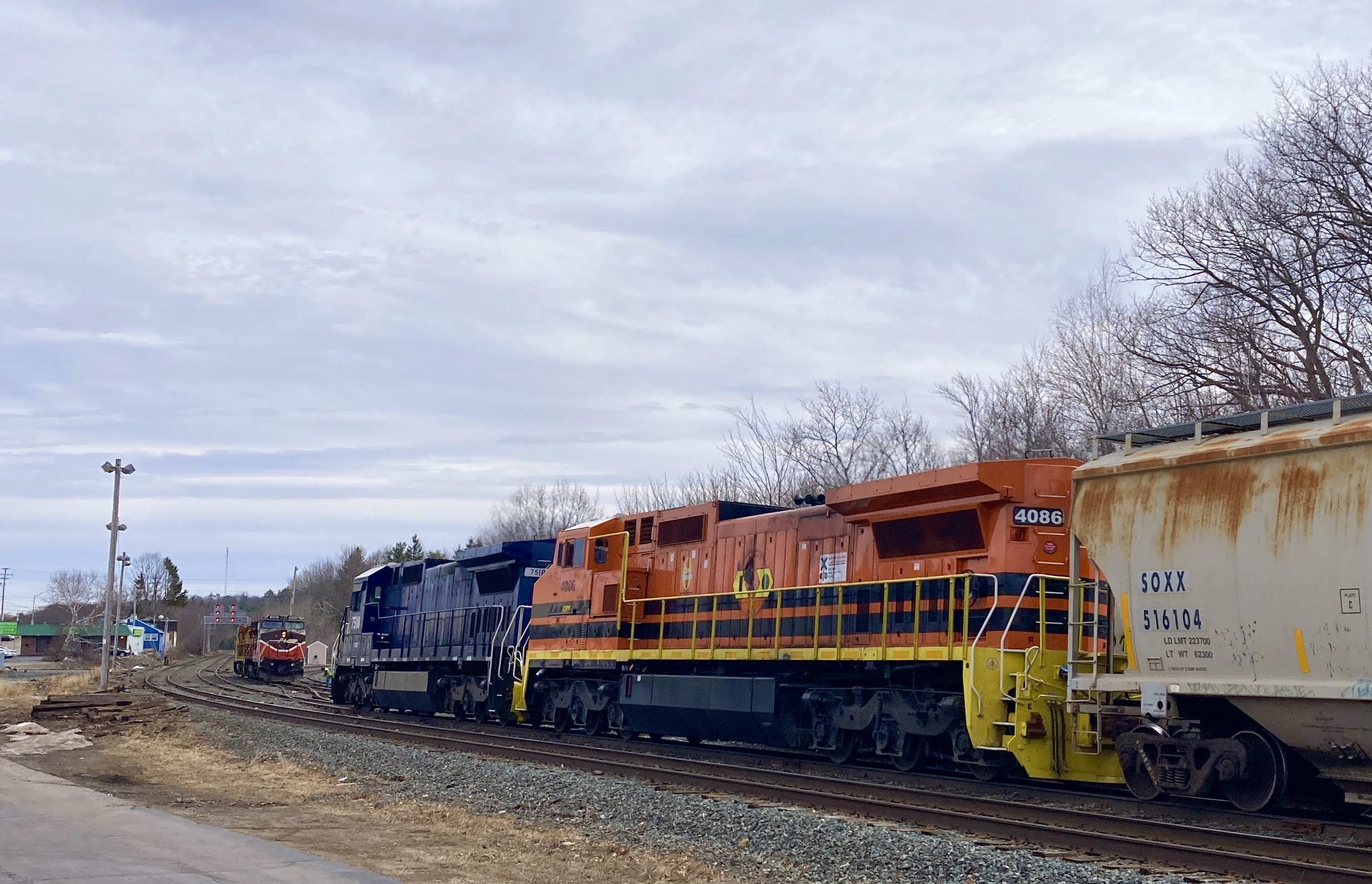 Gardner Ma EDAY, WOGR train swap. Photographed by Alan LaPierre, March 27, 2026. Added to the photo archive by Alan LaPierre, March 27, 2026. Railroad: Pan Am Southern. » Contact the person who posted this photograph.