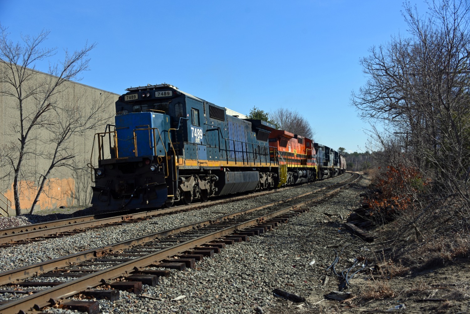 First HalfThe first half of the empty grain train waits at Willows Road, Ayer, MA before heading over to West Main Street.
