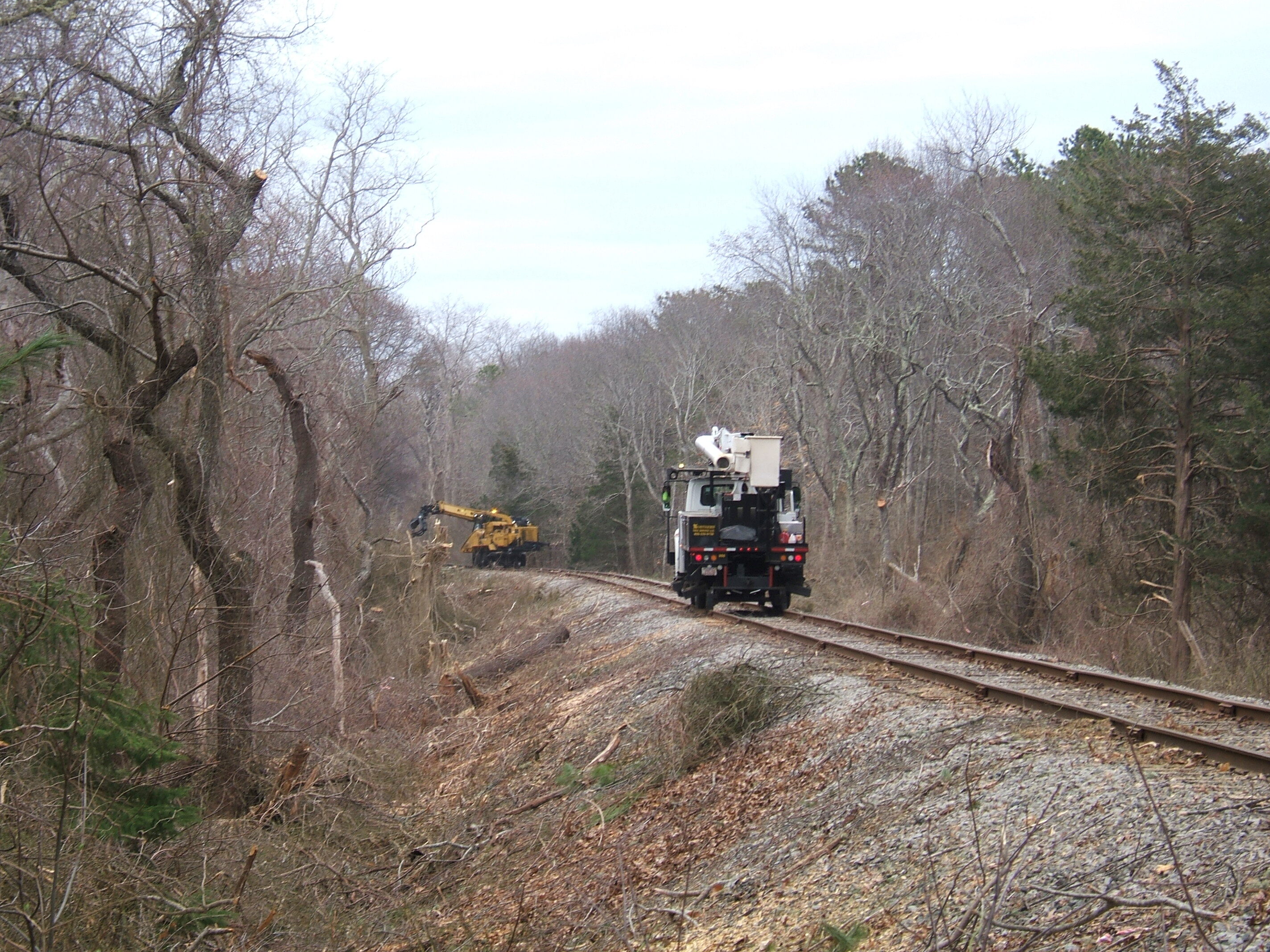 Northern Tree Service on the Cape Main lineTree crew working towards Old County Road overhead bridge at MP 66.95 in Sandwich MA