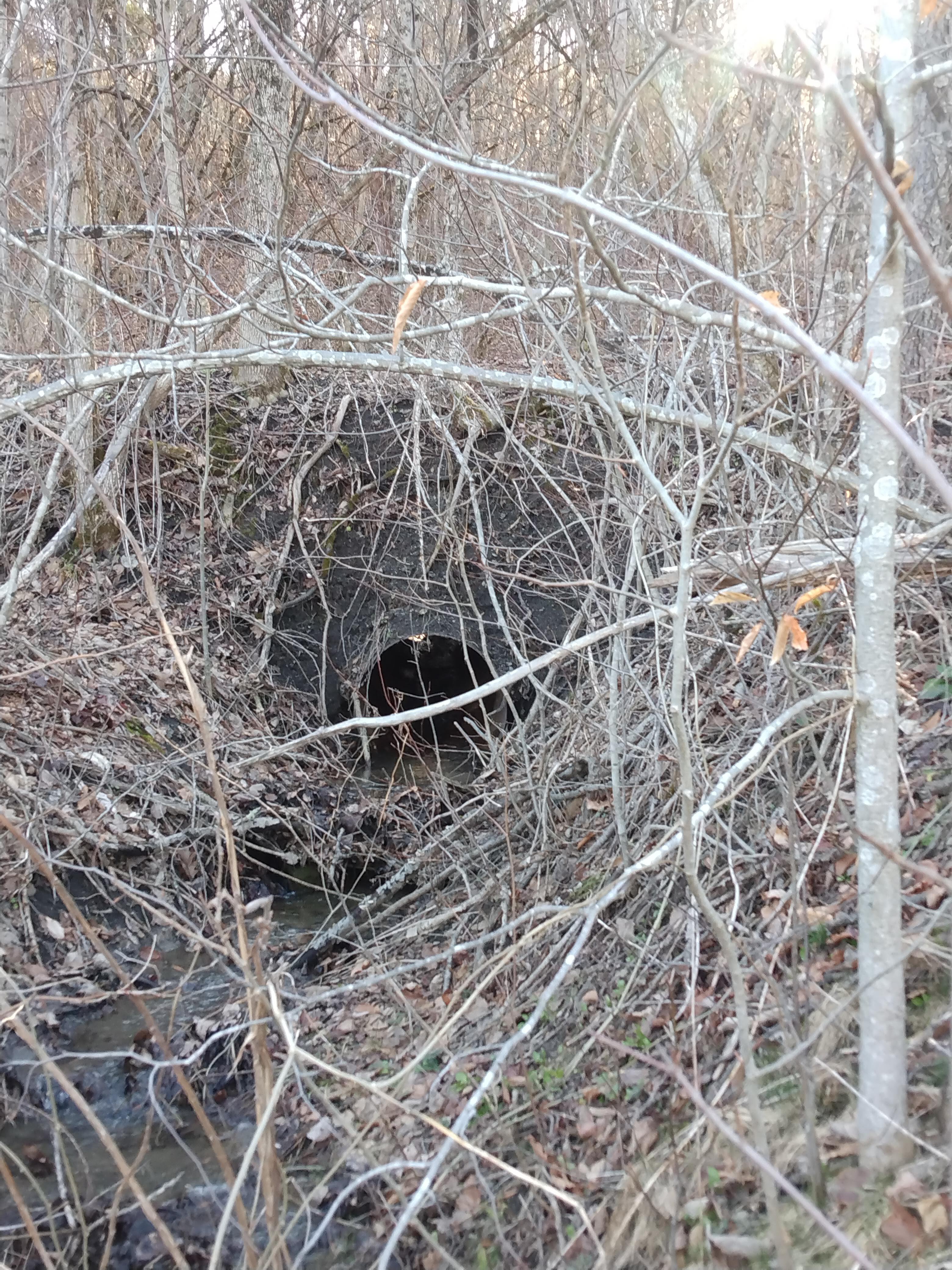 Lehigh Valley RR: Swartwood, NY The grade of the Elmira, Cortland & Northern RR along Decker Road. This cast iron pipe is still working. Last train was in 1937. Photographed by Chris Bigham, March 27, 2026. Added to the photo archive by Chris Bigham, April 2, 2026. Railroad: Lehigh Valley. » Contact the person who posted this photograph.