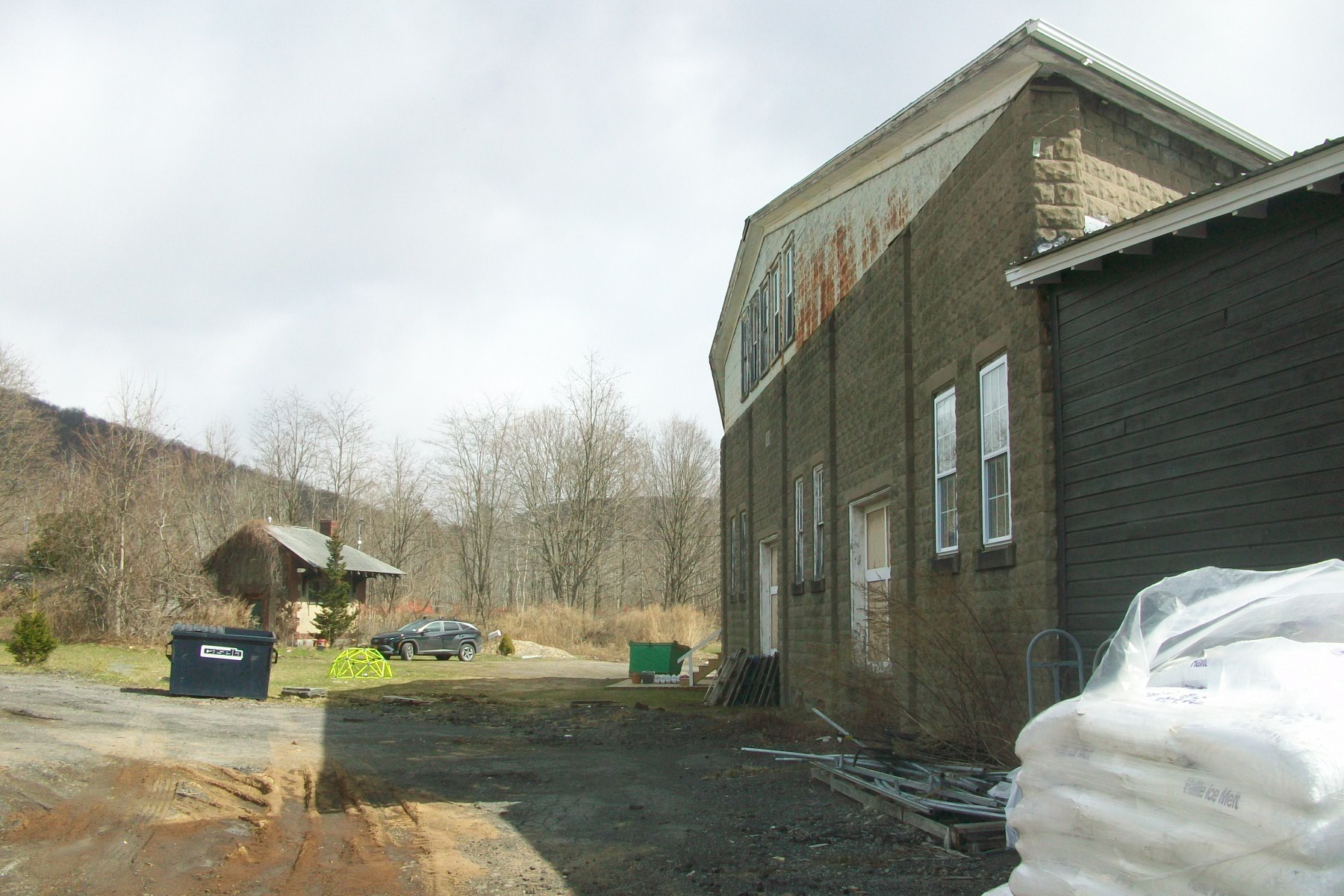 New York, Ontario & Western RR: Walton, NY This building in Walton has a slight curve due to the Delhi branch of the NYOW curving next to it. It was built in 19255. Photographed by Chris Bigham, March 28, 2026. Added to the photo archive by Chris Bigham, April 2, 2026. Railroad: New York Ontario and Western. » Contact the person who posted this photograph.