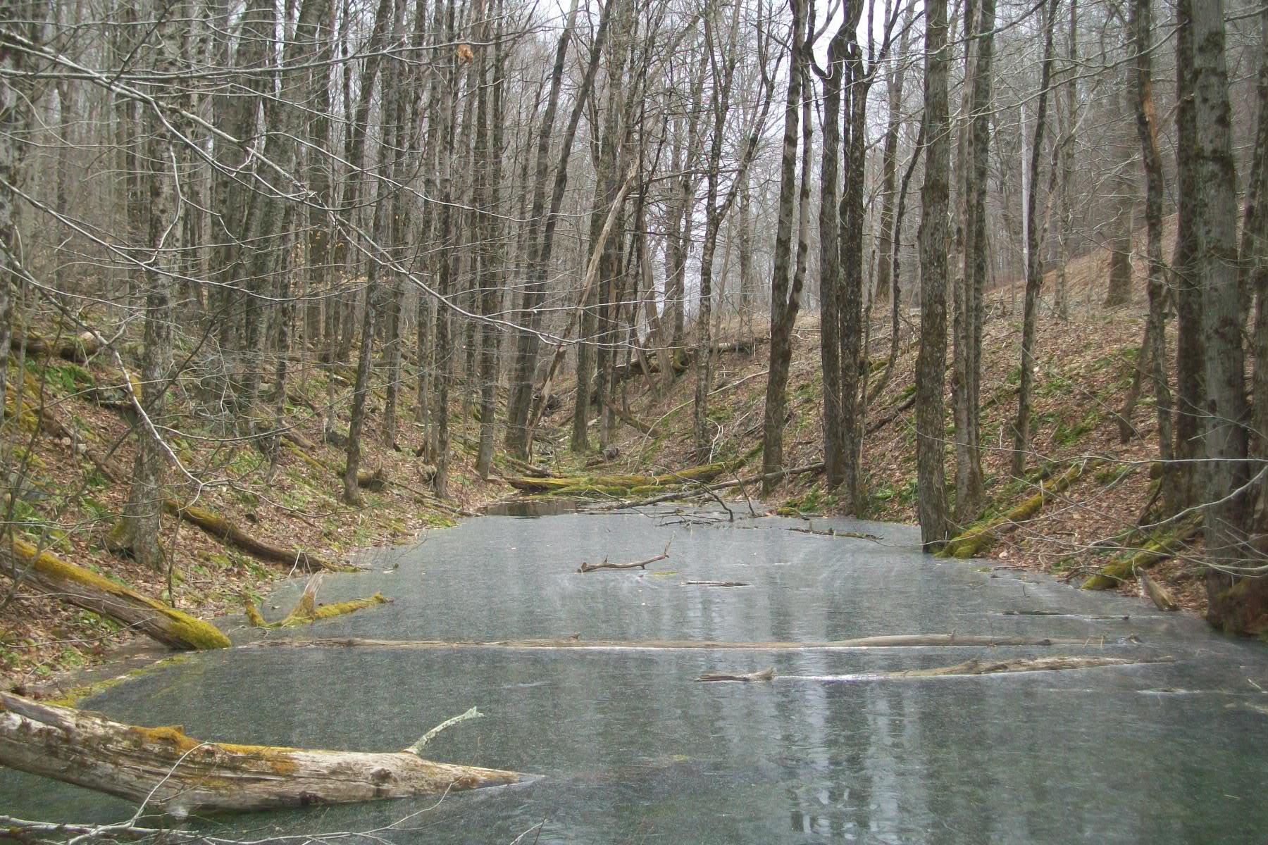 This is the switchback line near the north portal. Water has flooded the grade. Trains would be headed to Northfield through here.