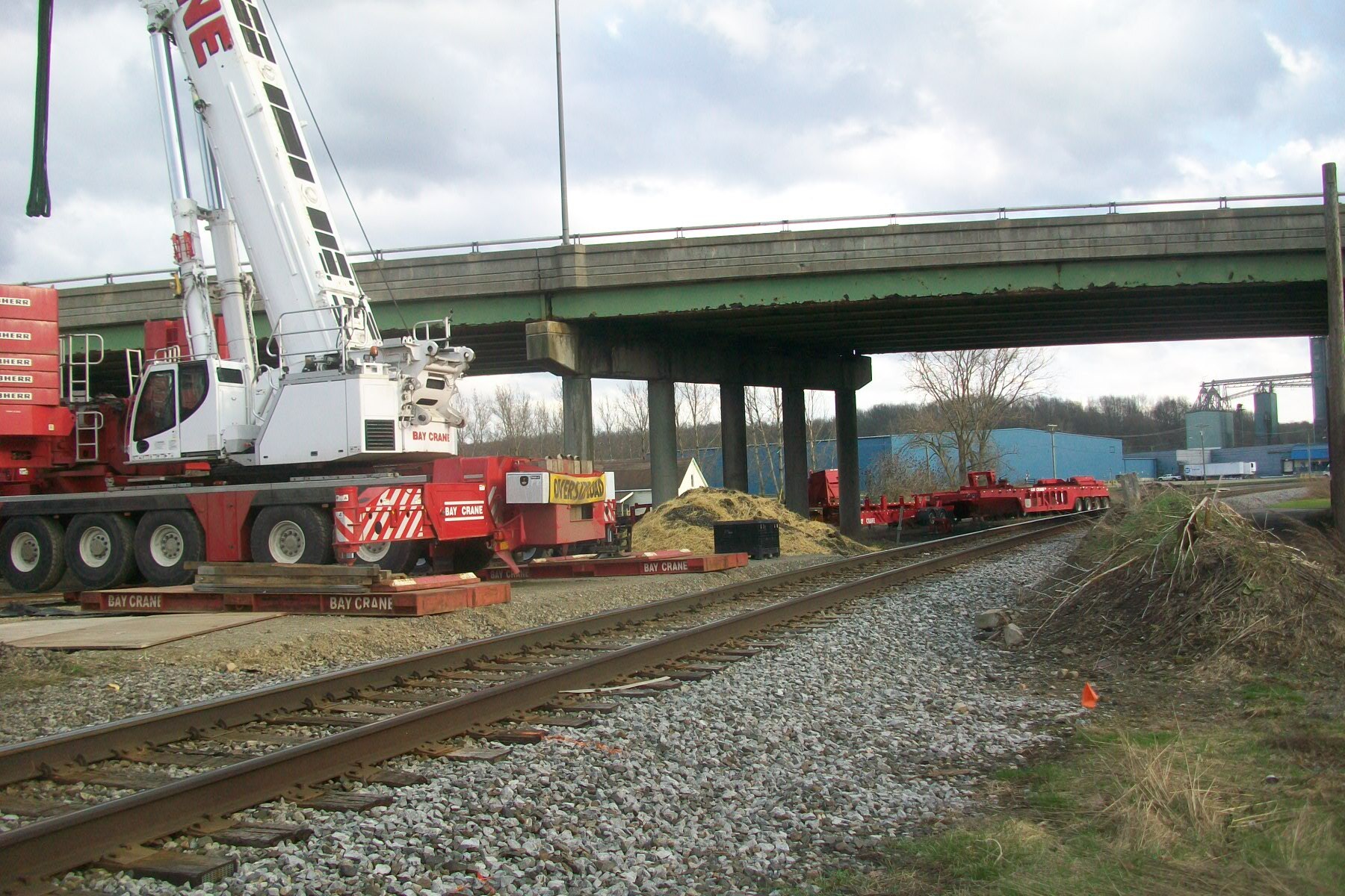 Buffalo & Pittsburgh RR: Arcade Jct., NY A large crane was next to the B&P tracks to unload a high and wide transformer for nearby windmills.